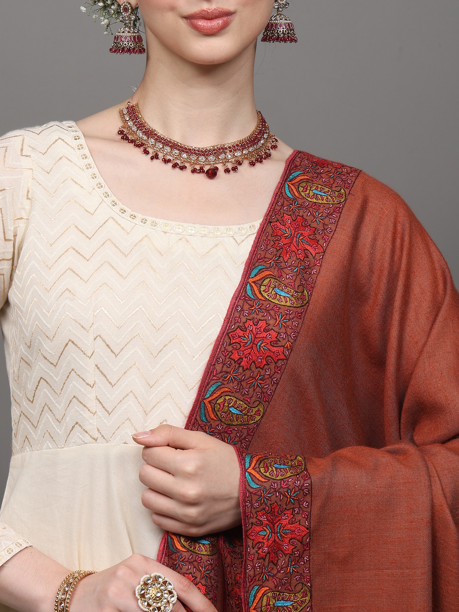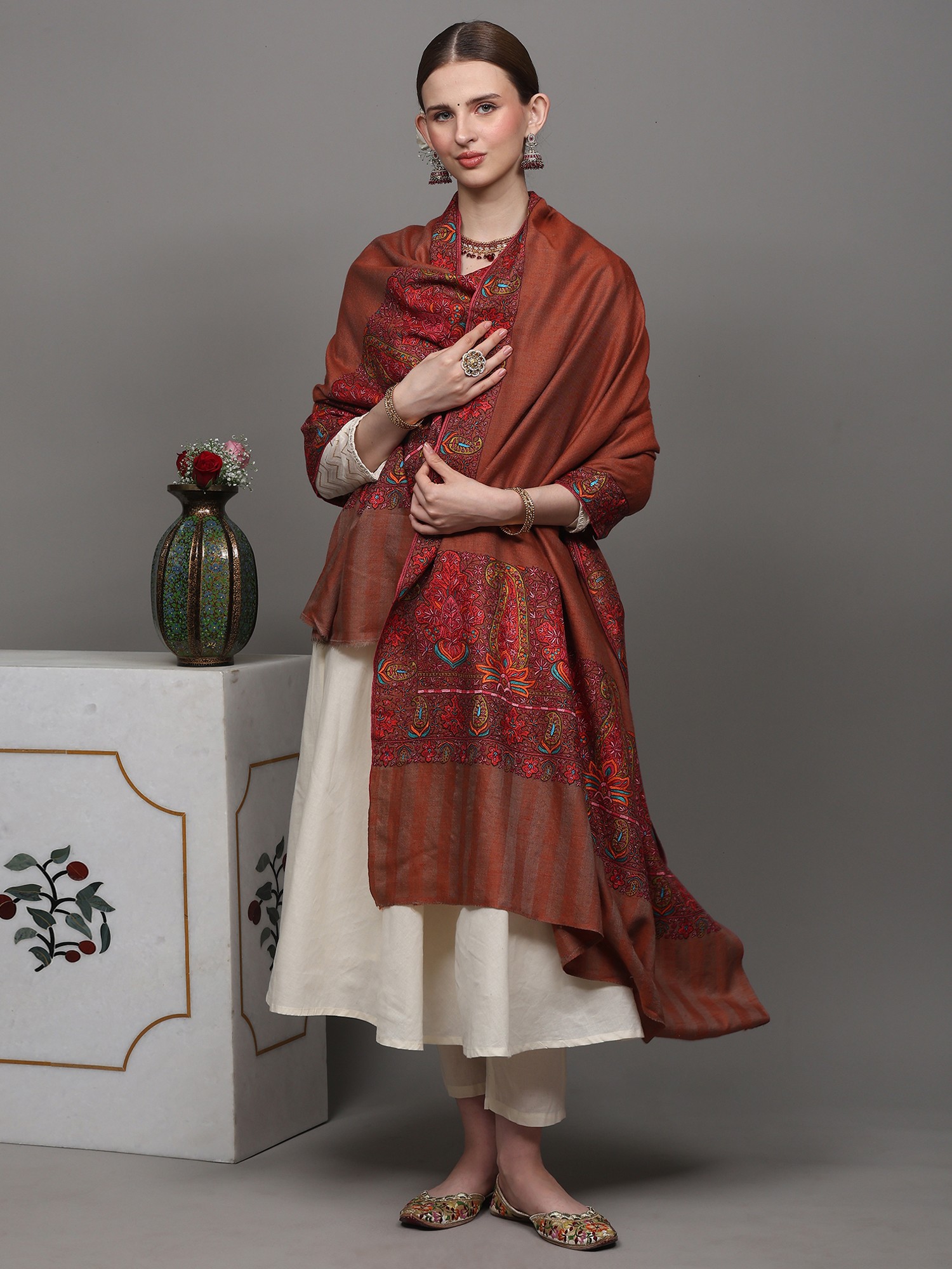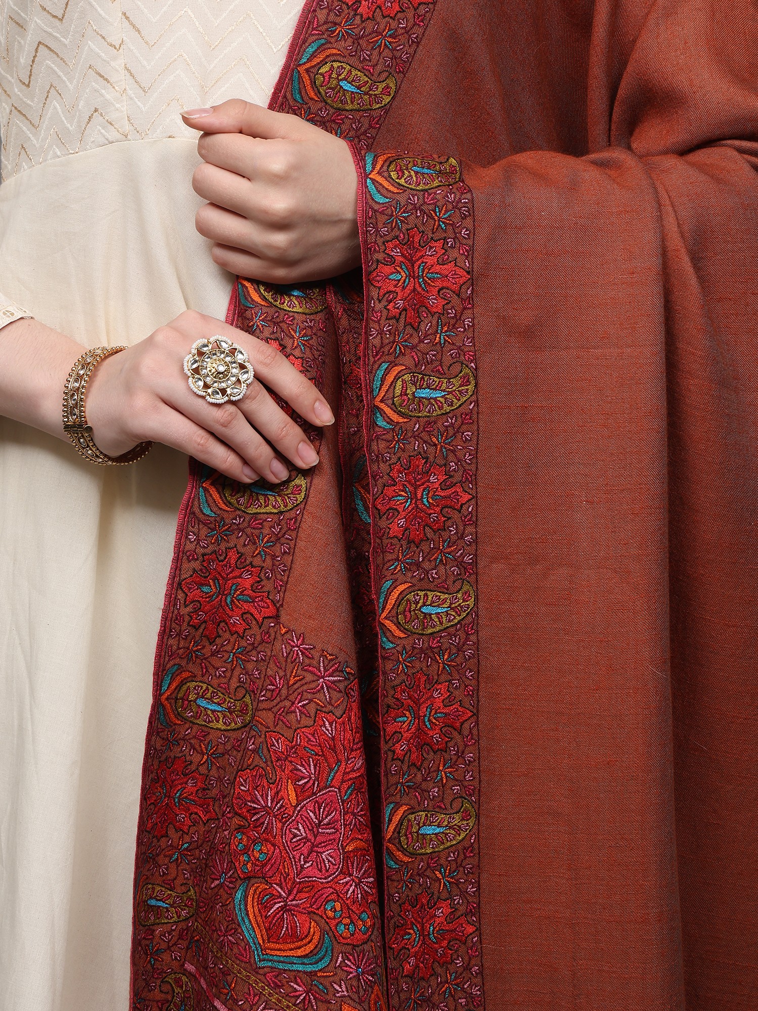 The texture is to die for. Softer than butter, warmer than toast, it could be layered over your choicest evening sarees and suits to exude an inimitable traditional glam. In fact, the word for the fabric comes from the Persian 'pashm', which means 'soft'. No other part of the world has the skill to work with this wool, which itself is endemic to the Kashmir-Tibet region. A single work of pashmina such as this one takes weeks, if not months, of labour to be finished, making these shawls as desirable they are the world over.