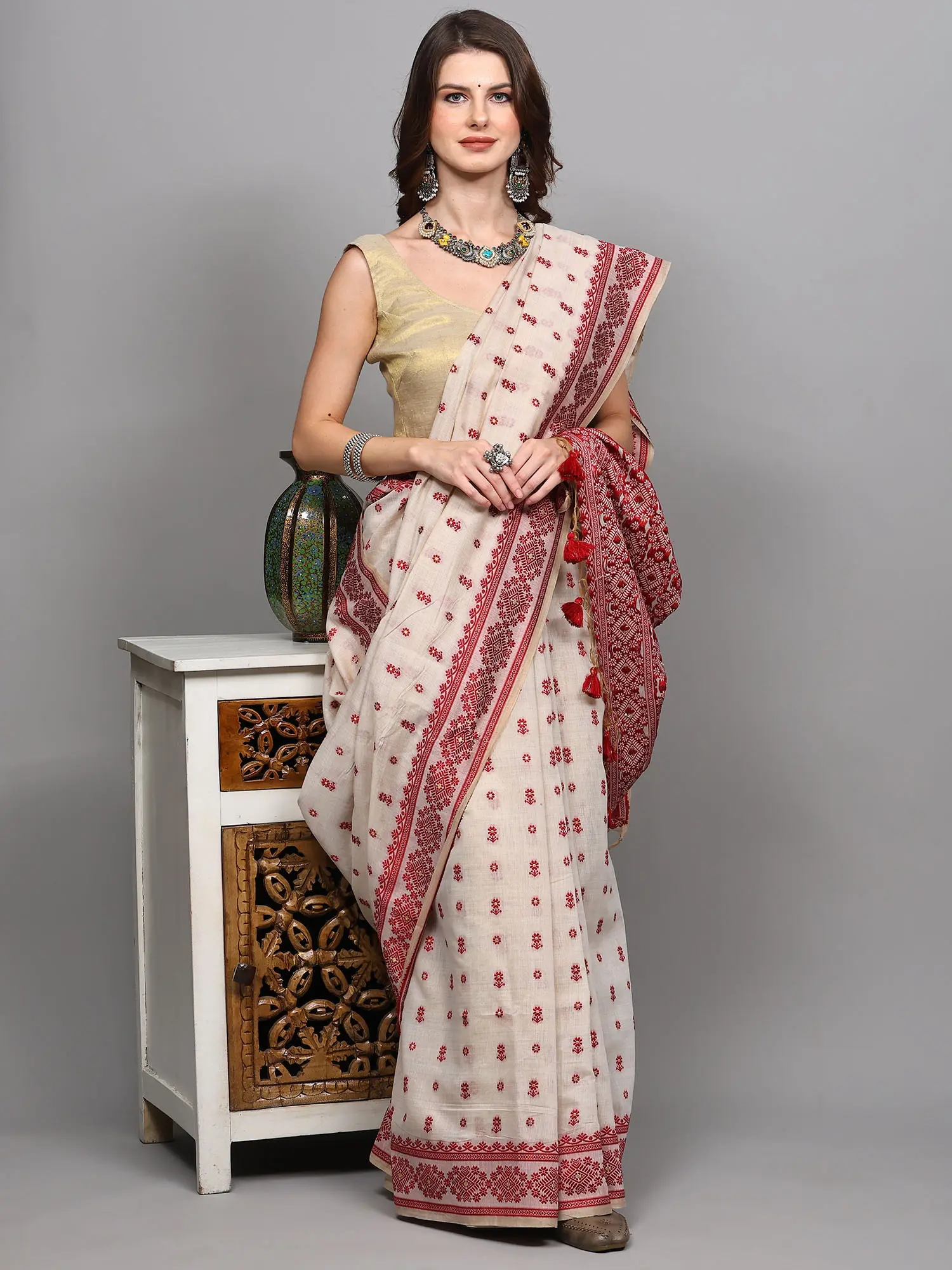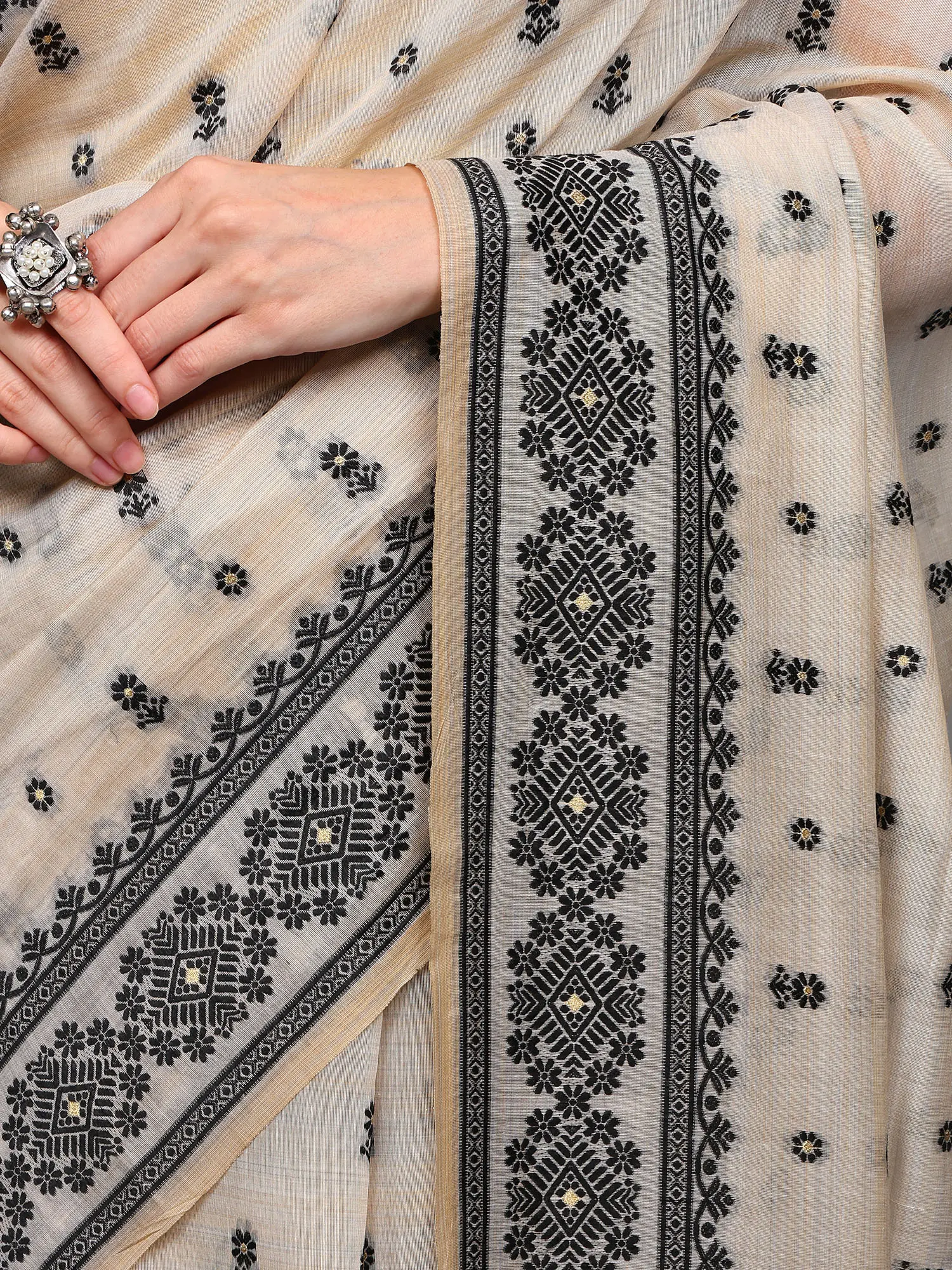 Whitecap-Gray Ikat Handloom Pure Cotton Saree with Contrast Blue Temple Border from Sambalpur