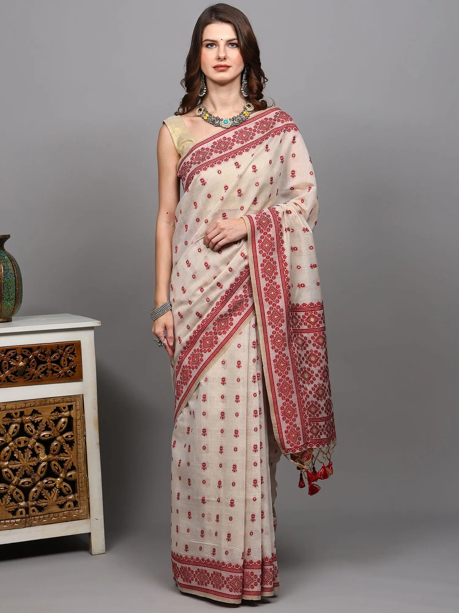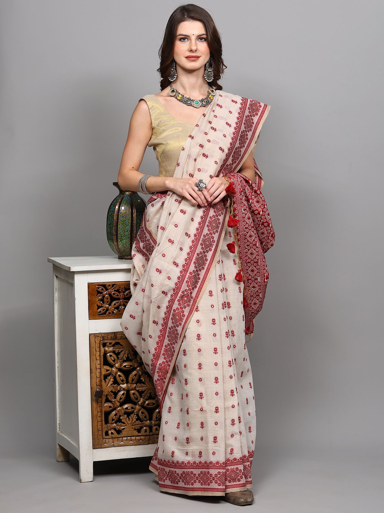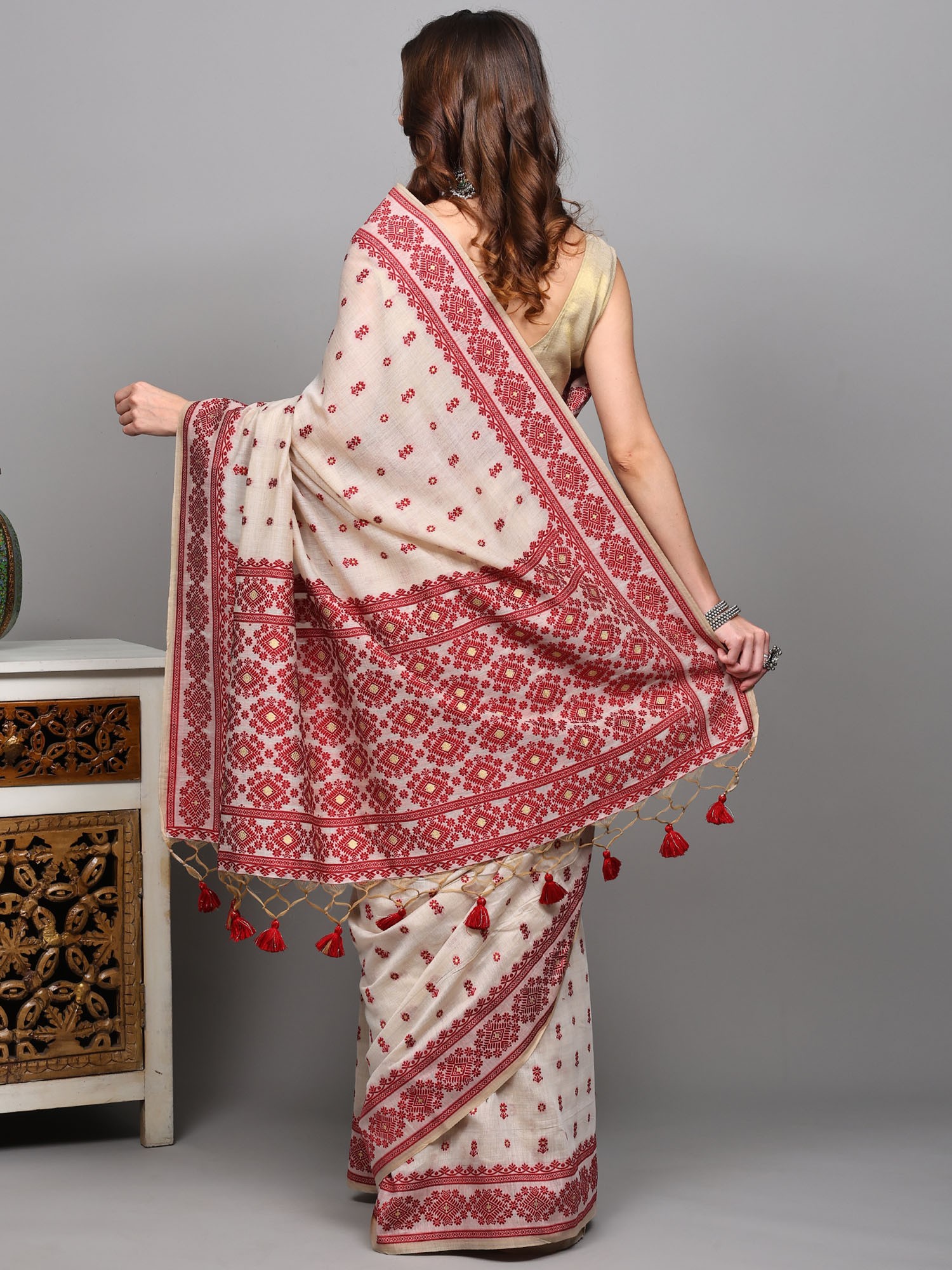 Kalamkari Pure Cotton Saree from Telangana with Hand-Painted Buddha Heads