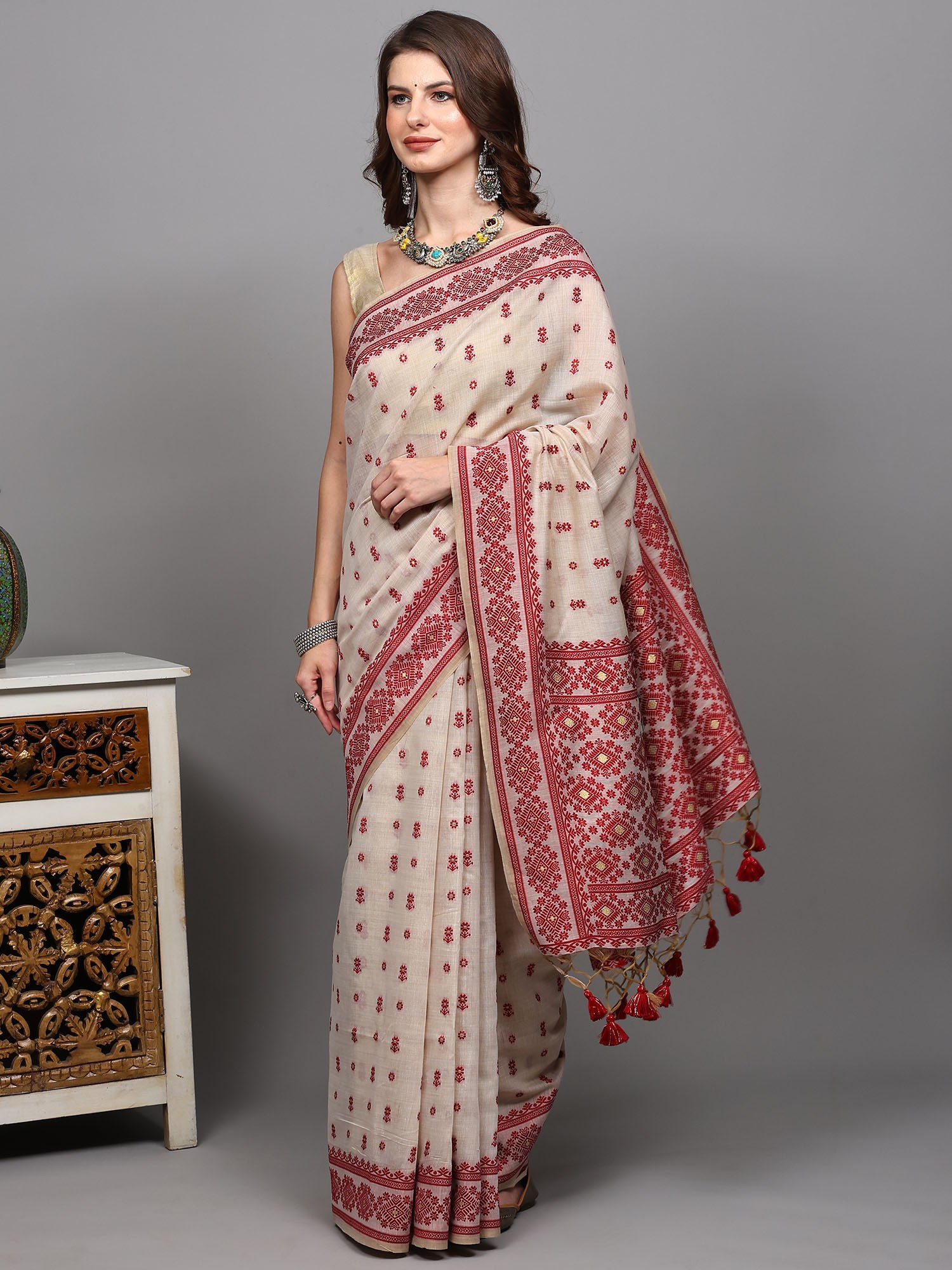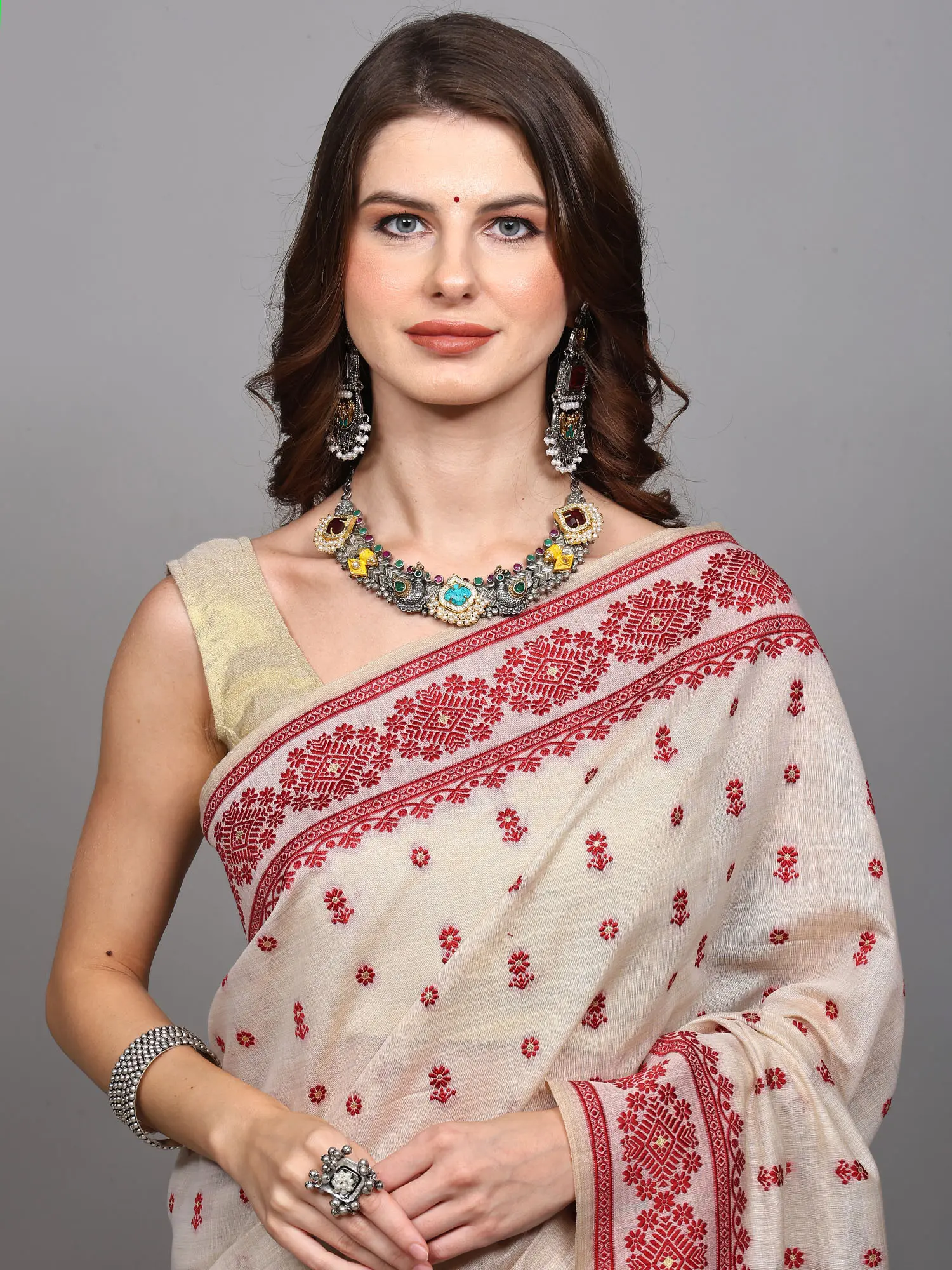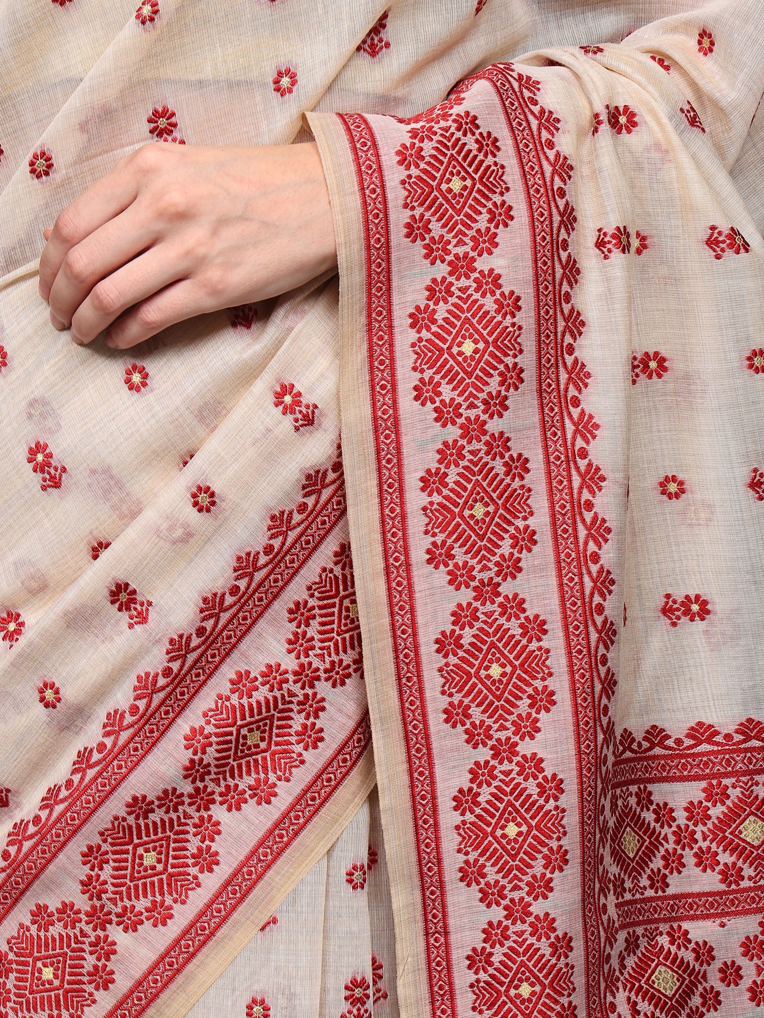 Kalamkari Pure Cotton Saree from Telangana with Hand-Painted Buddha Heads