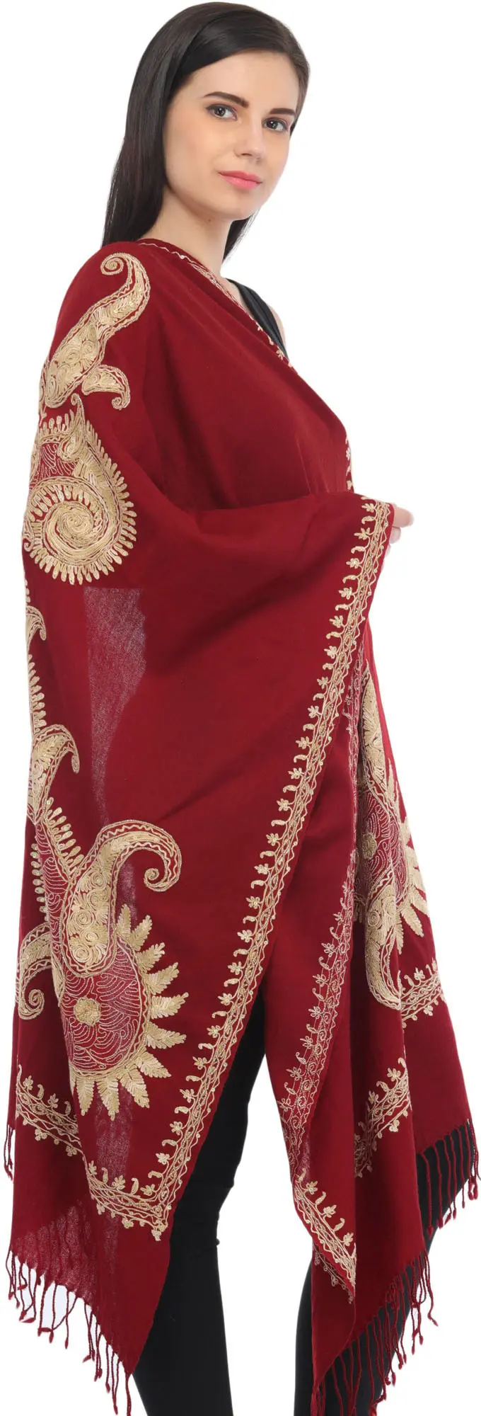 Tri-Color Bridal Anarkali Suit with Crewel Embroidery and Patch Border