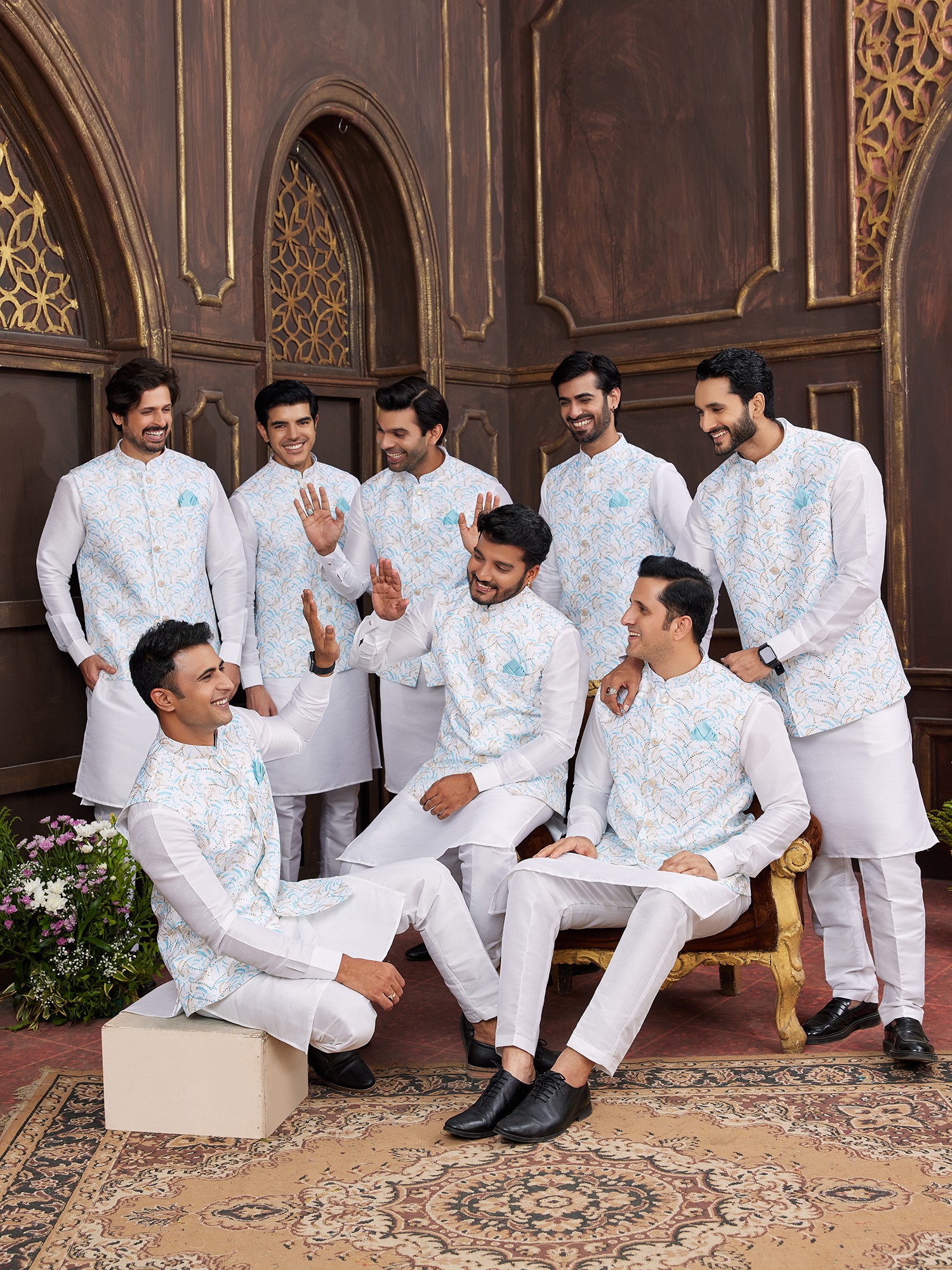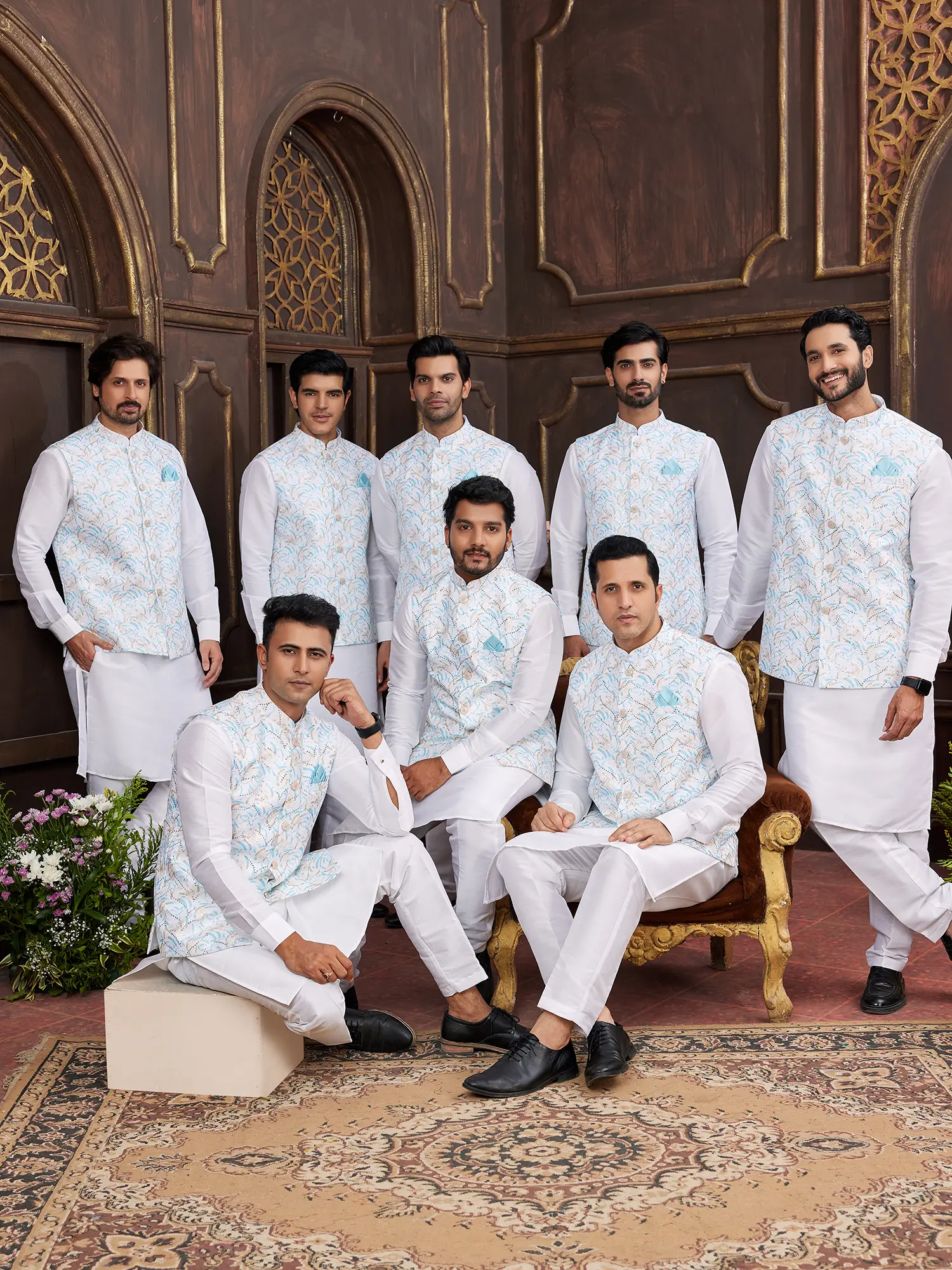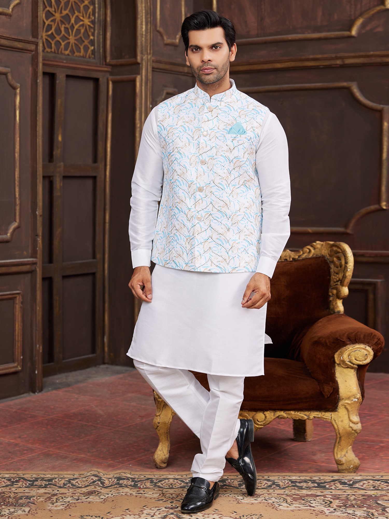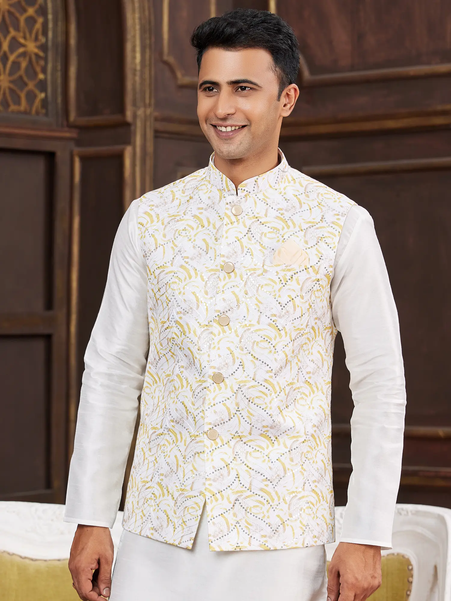 Ethnic Party Wear Floral Brocade Nehru Jacket Waist Coat