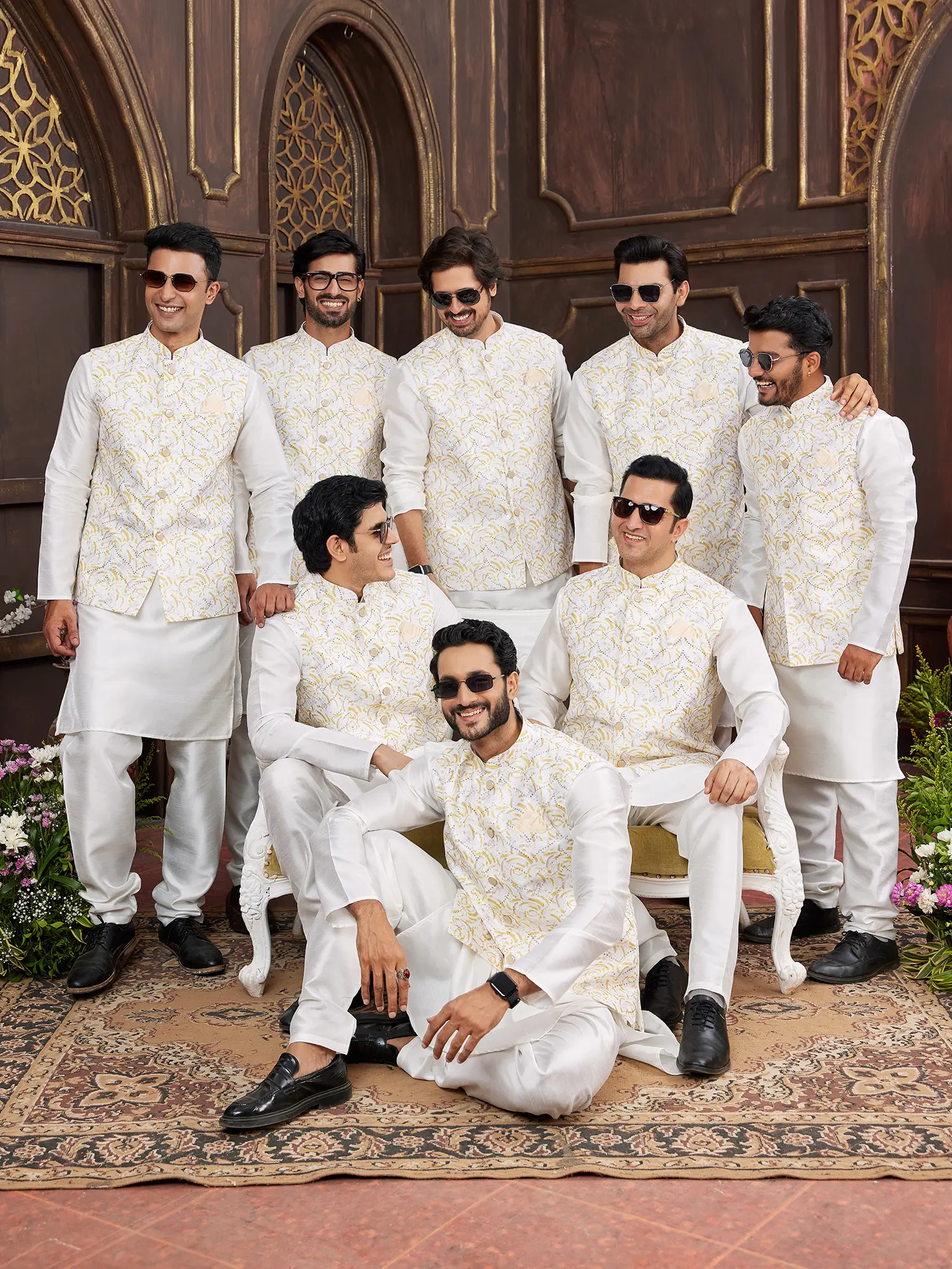 Brocaded Modi Jacket Waist Coat with Golden Floral Motif