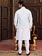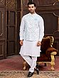 Brook-Green Three Piece Kurta Pajama Set with Sequins Embroidered Front Open Jacket