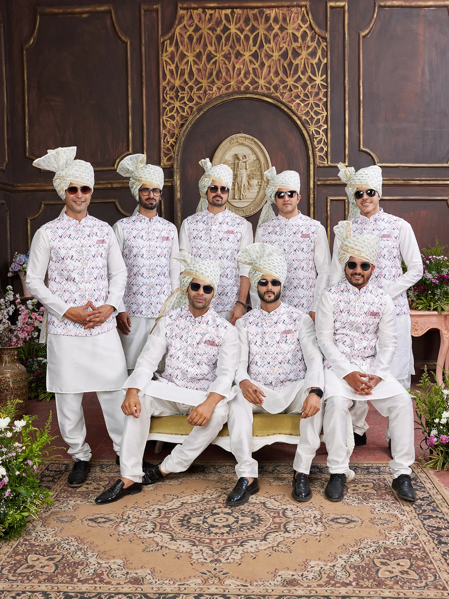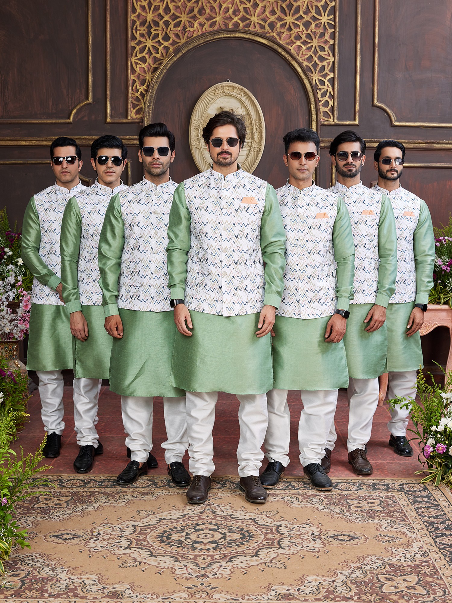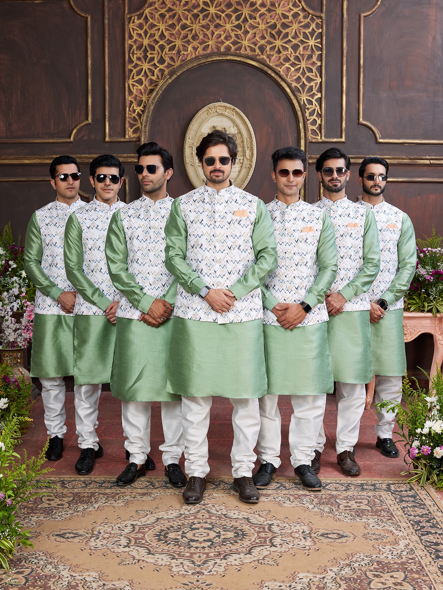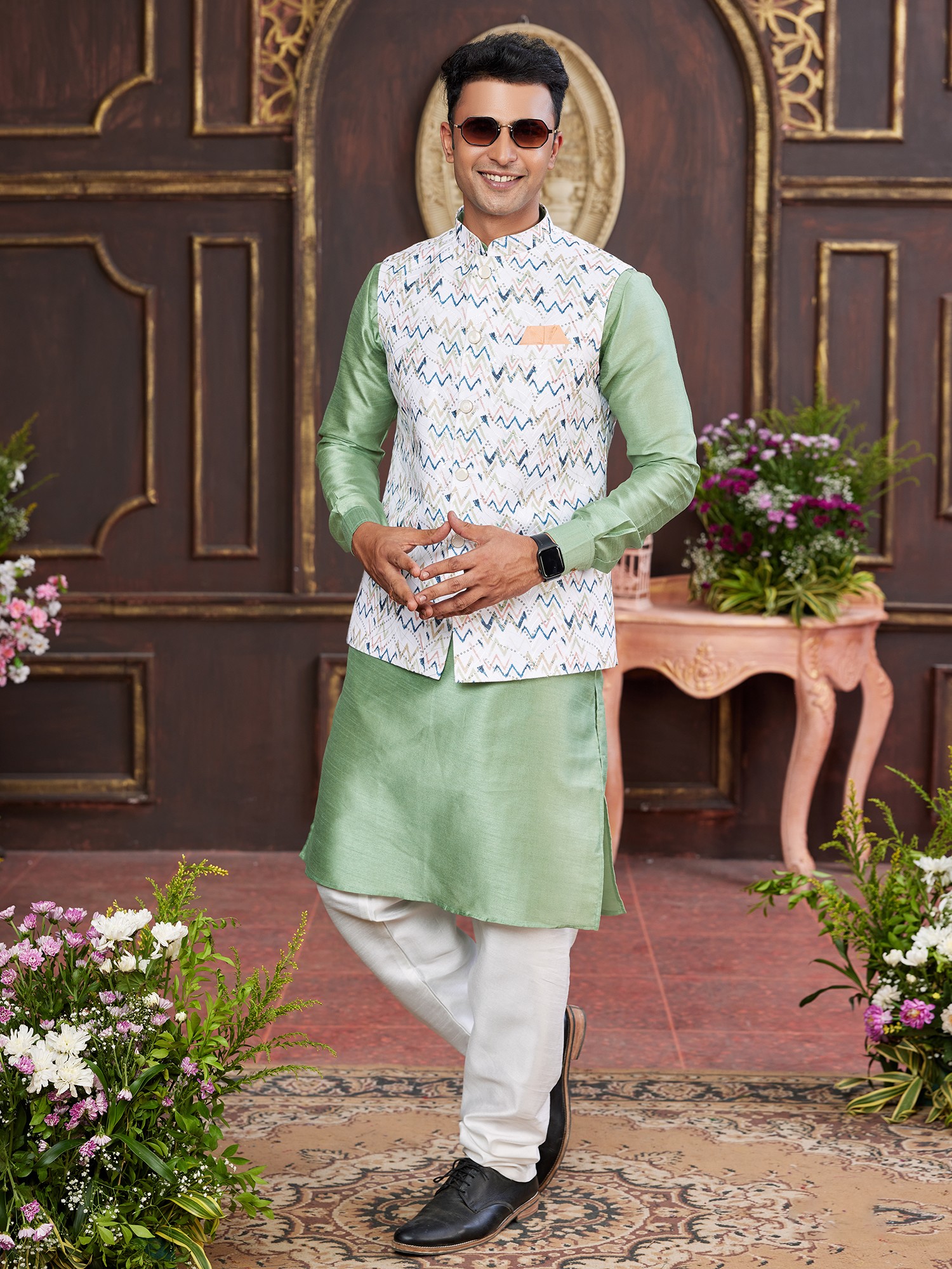 Classic Men's Traditional Art Banarasi Silk Attractive Kurta Pajama With Waistcoat