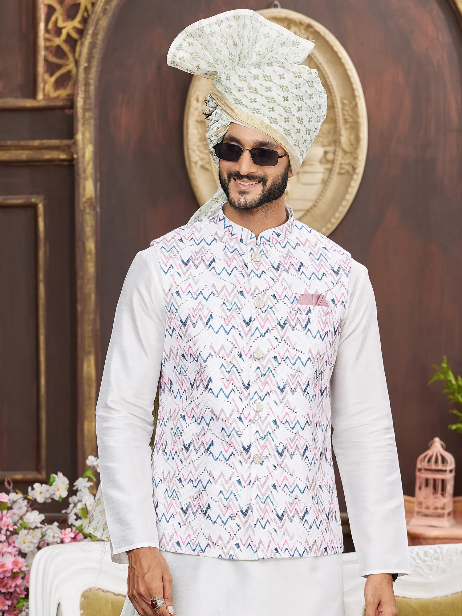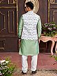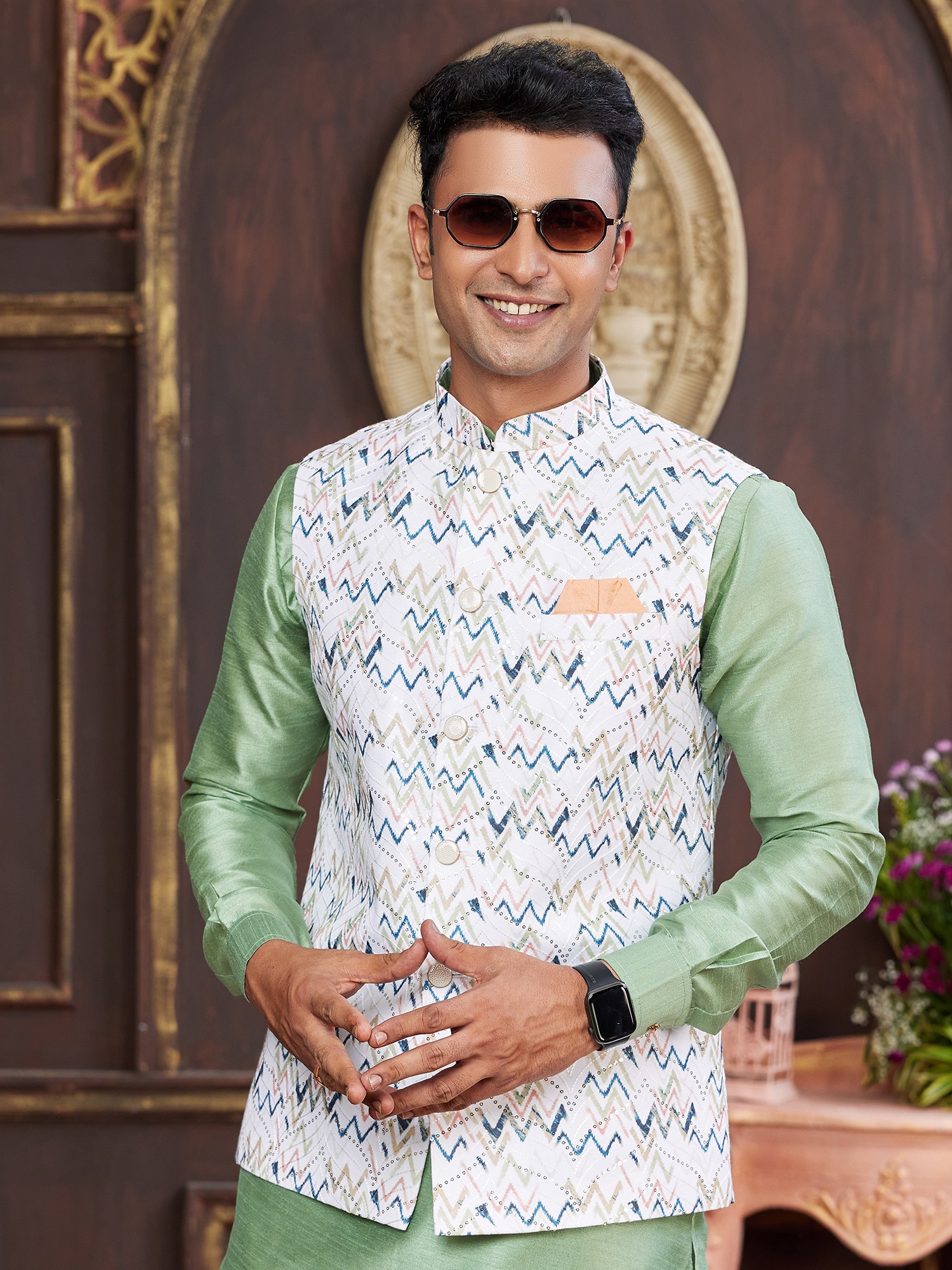 Stunning Men's Traditional Art Banarasi Silk Festive Wear Kurta Pajama With Waistcoat