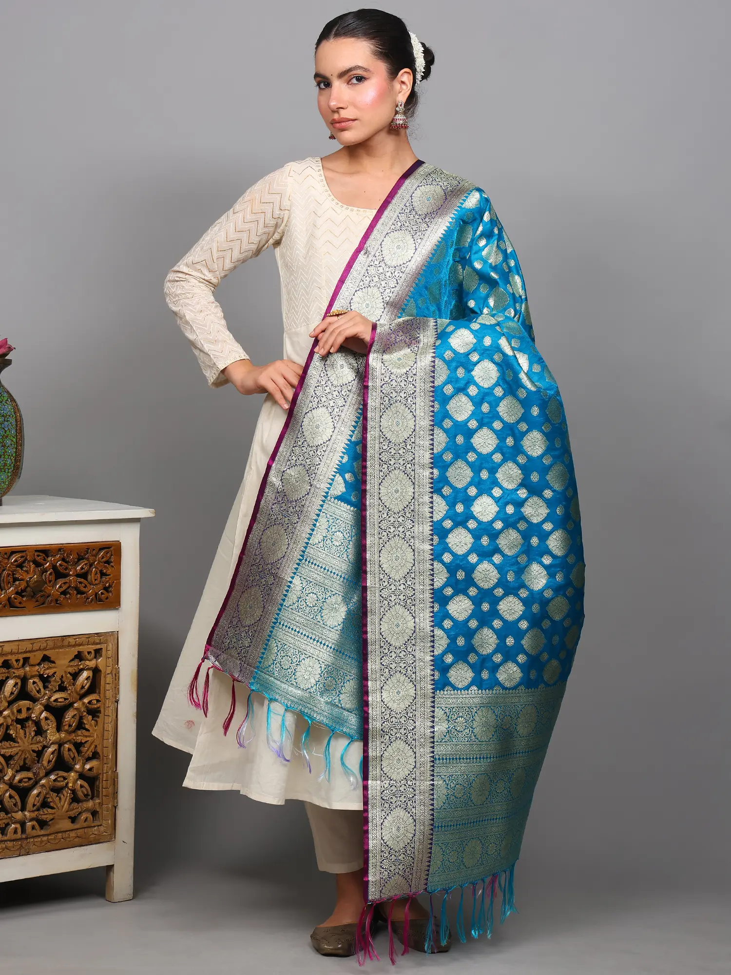Hand-Woven Banarasi Dupatta with Tanchoi Weave