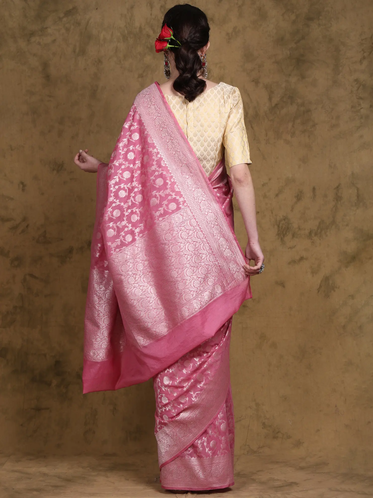 Rock-Ridge Pure Silk Brocaded Meenakari Banarasi Saree with All-Over Zari Woven Floral Jaal