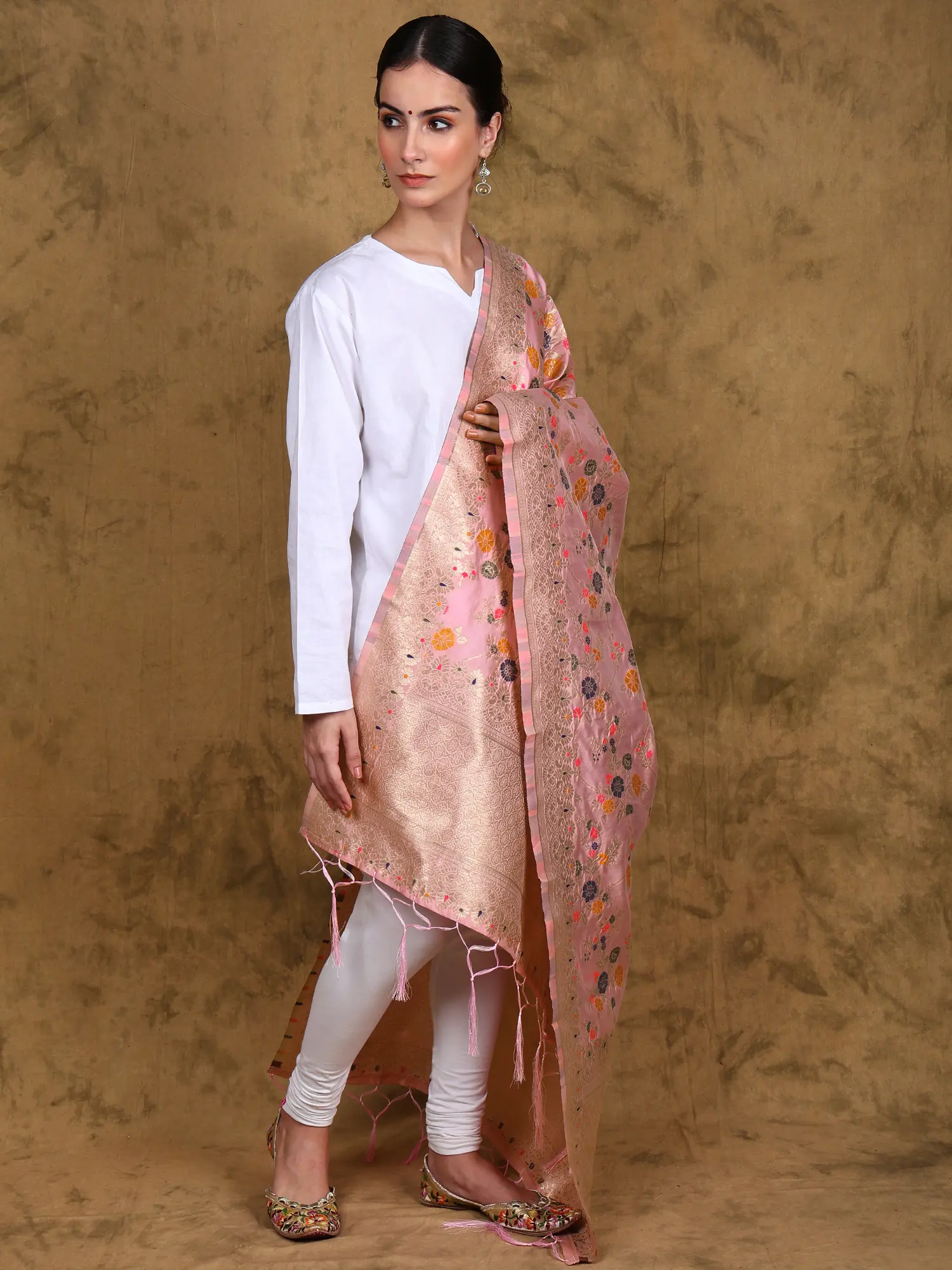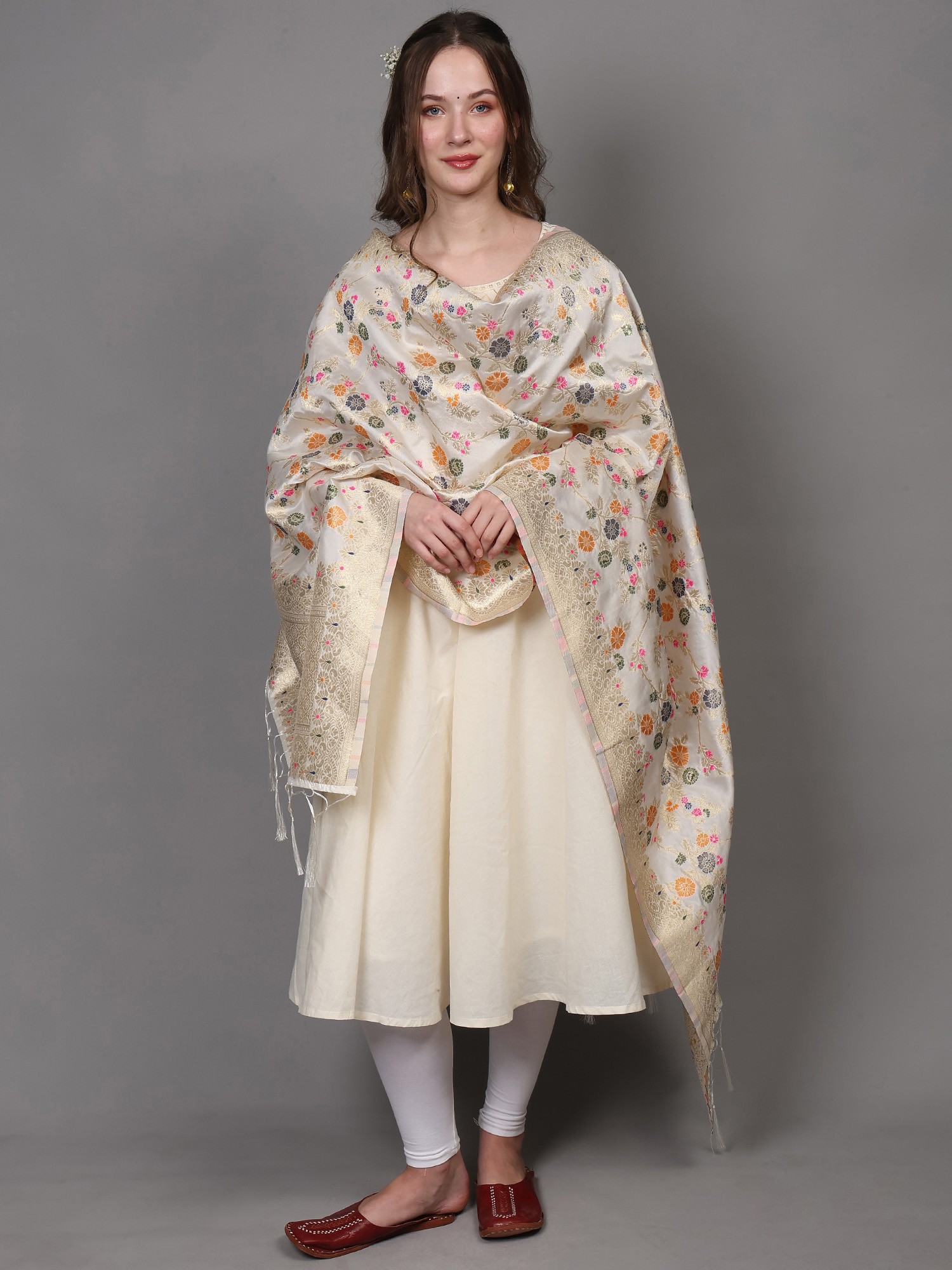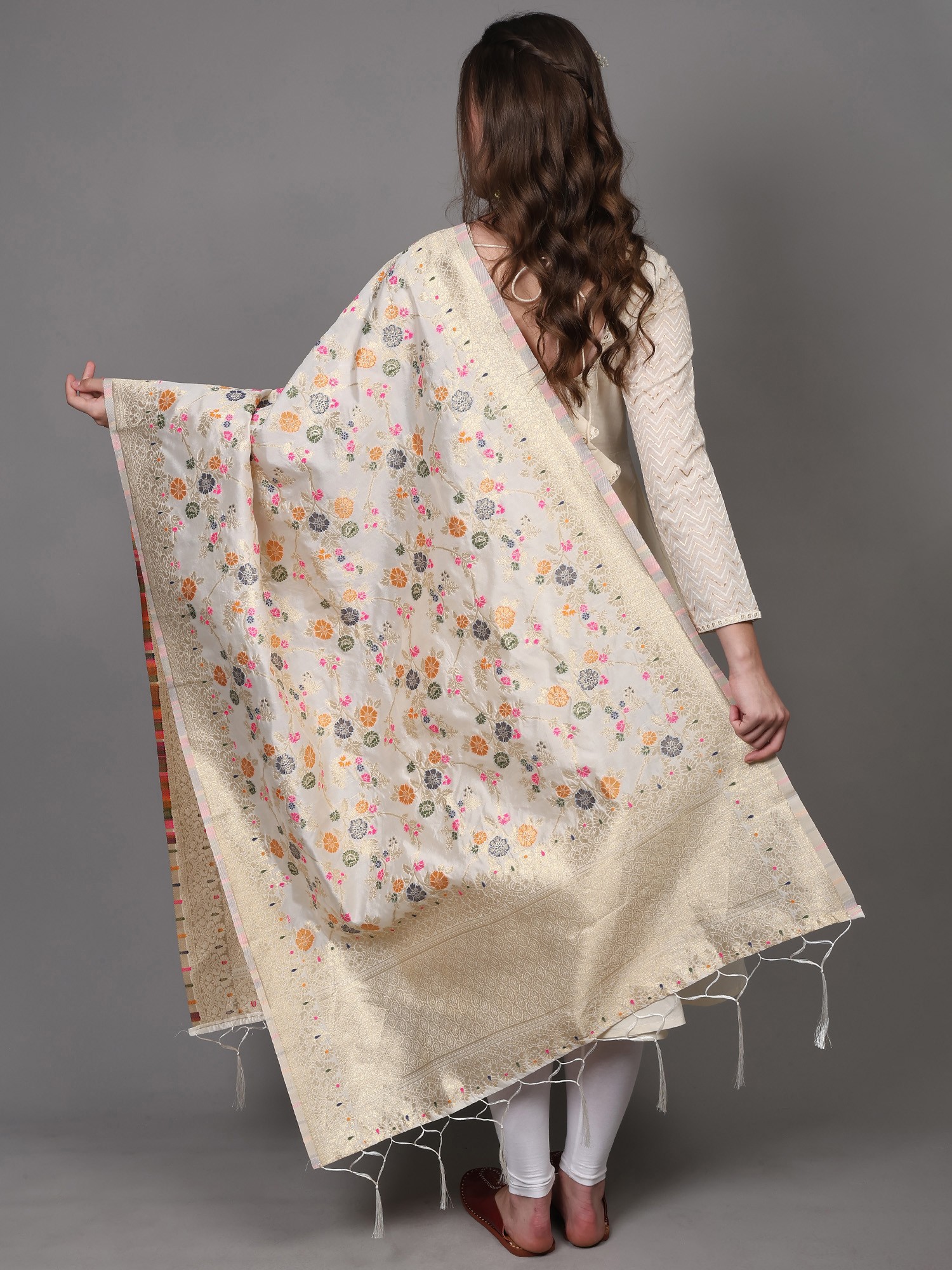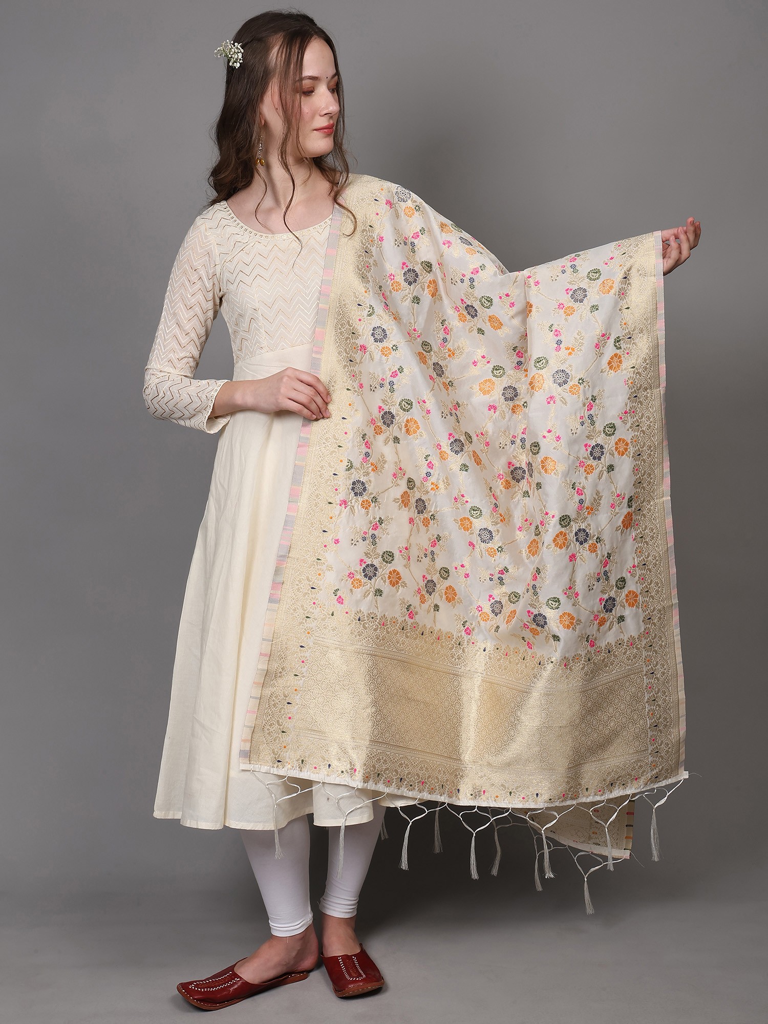 Banarasi Brocaded Zari Thread Dupatta with Floral Weave