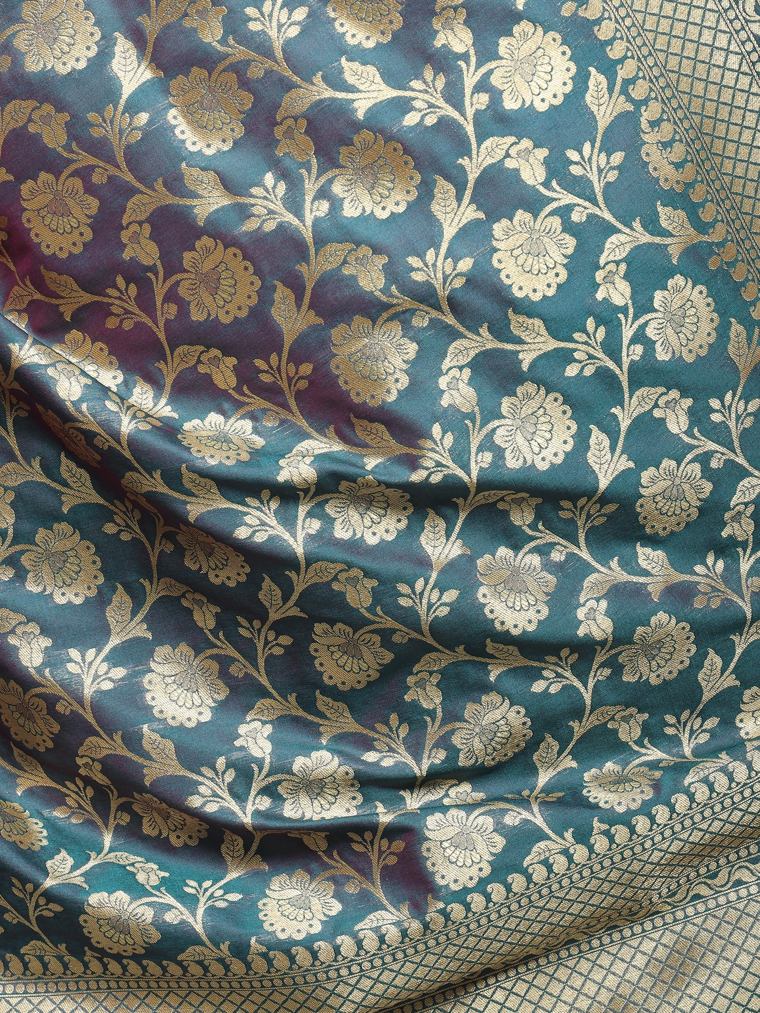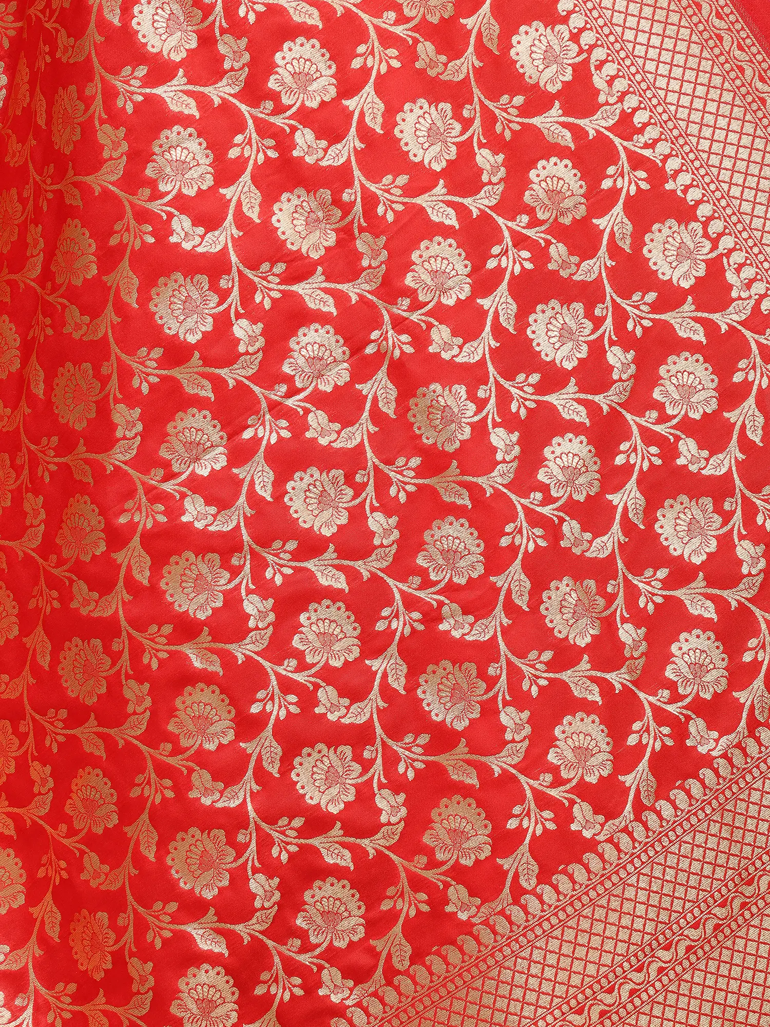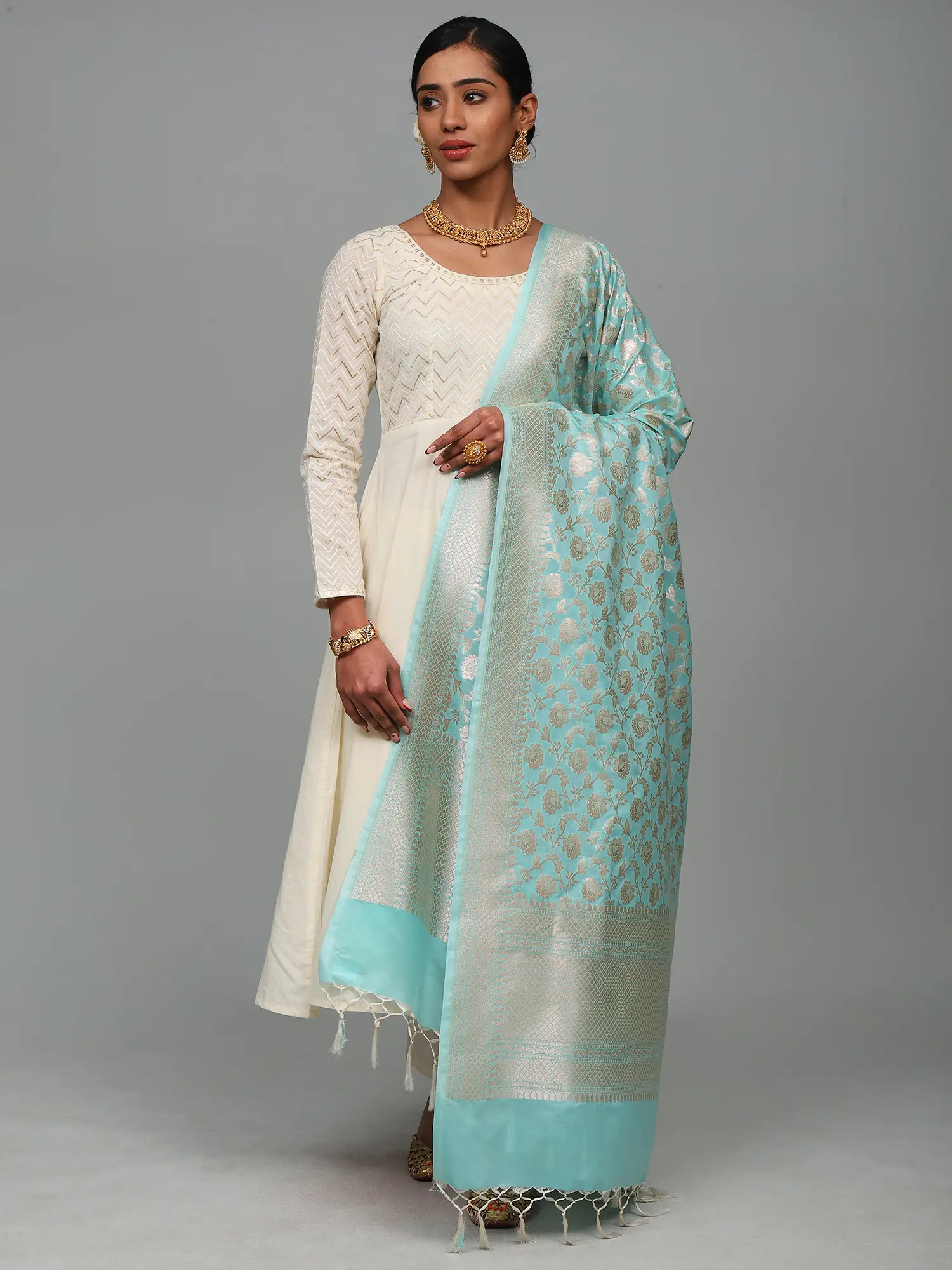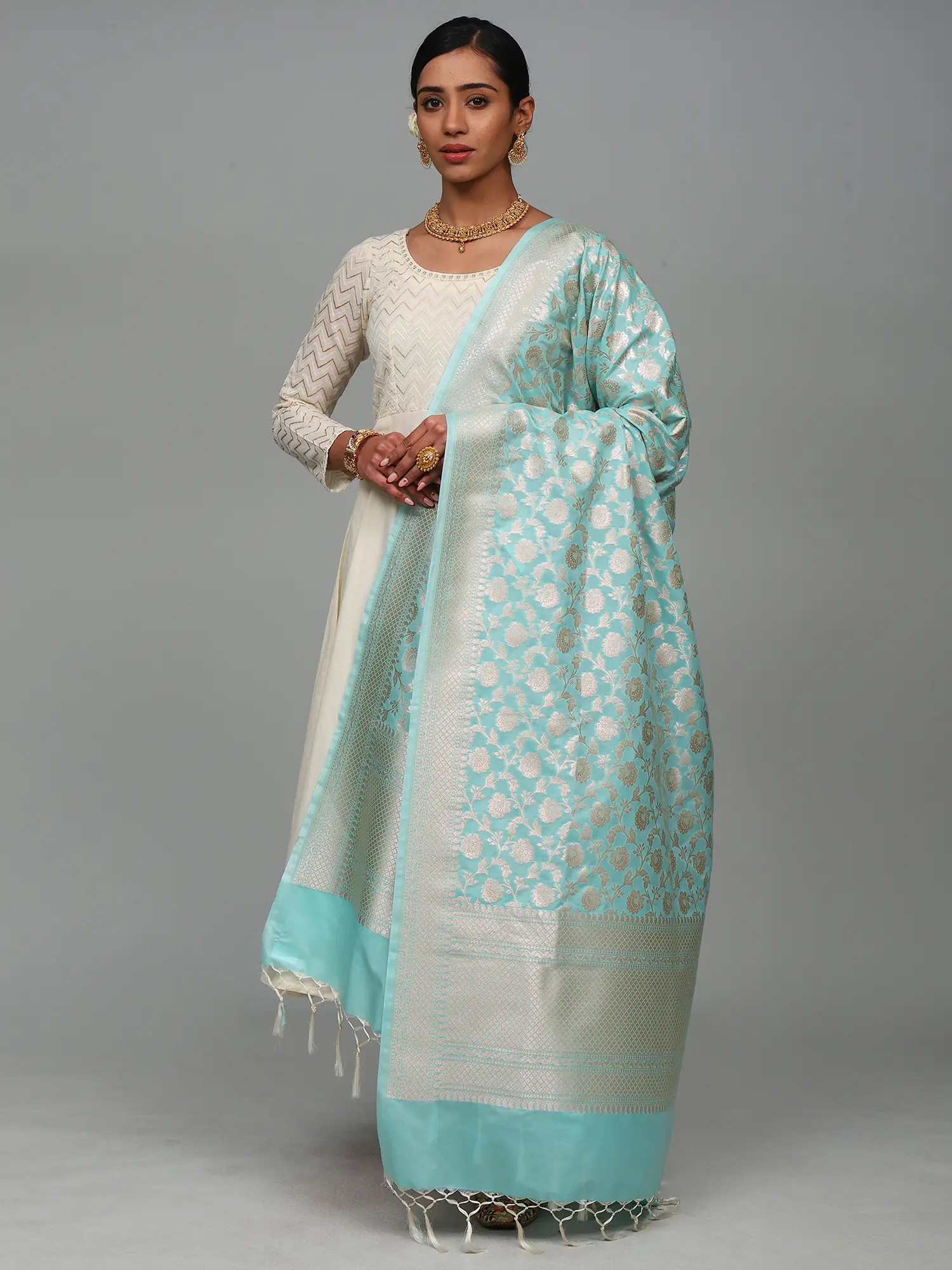 Banarasi Art Silk Dupatta with Zari Woven Golden Floral Bootis and Contrast Border