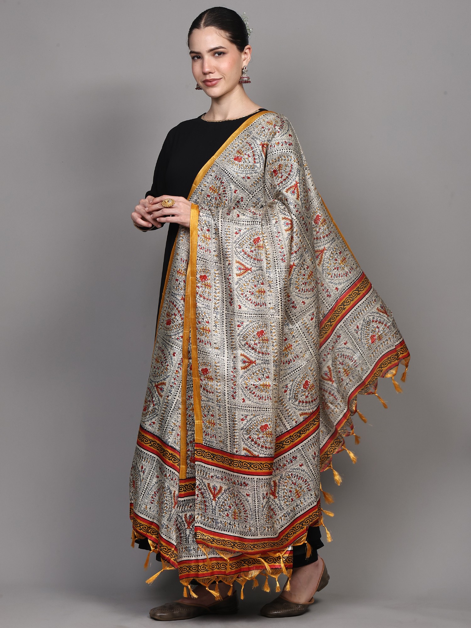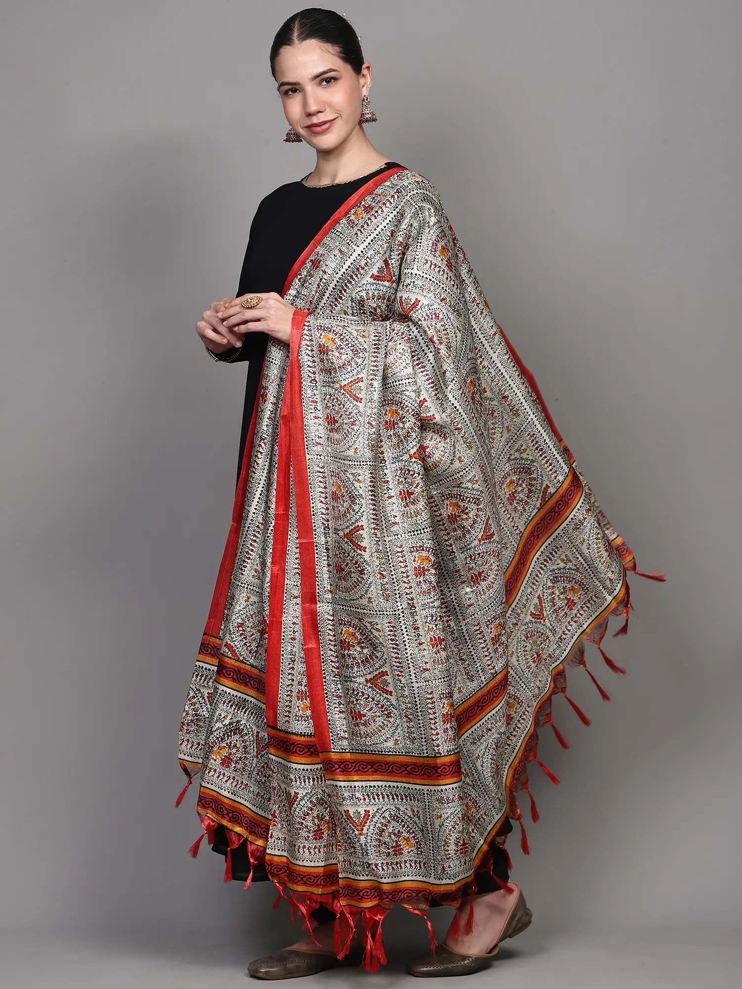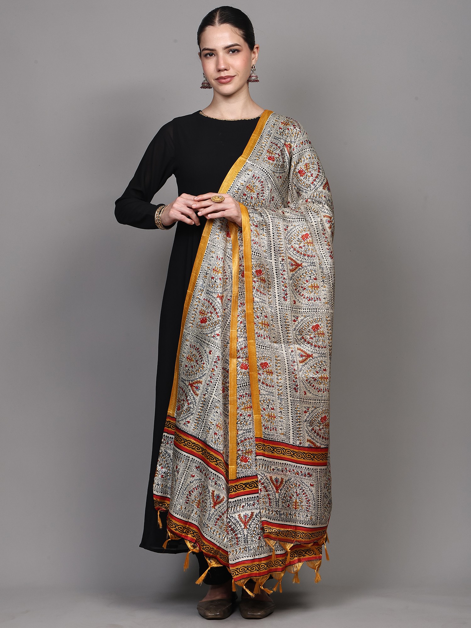 Art Silk Dupatta with Printed Zig-Zag Pattern and Temple Border