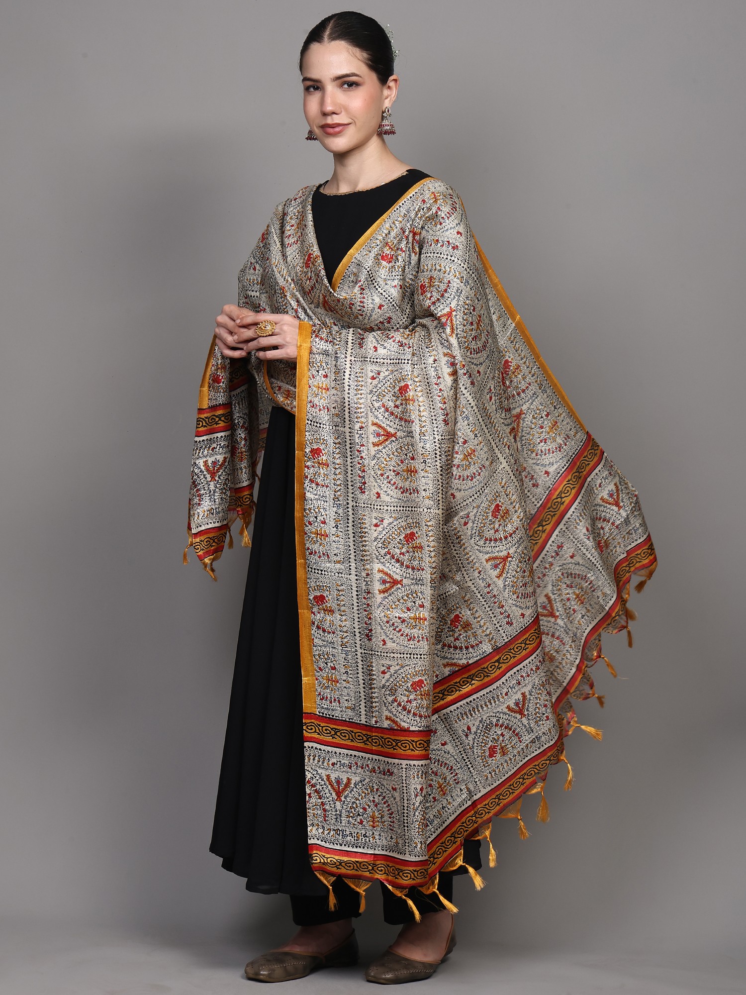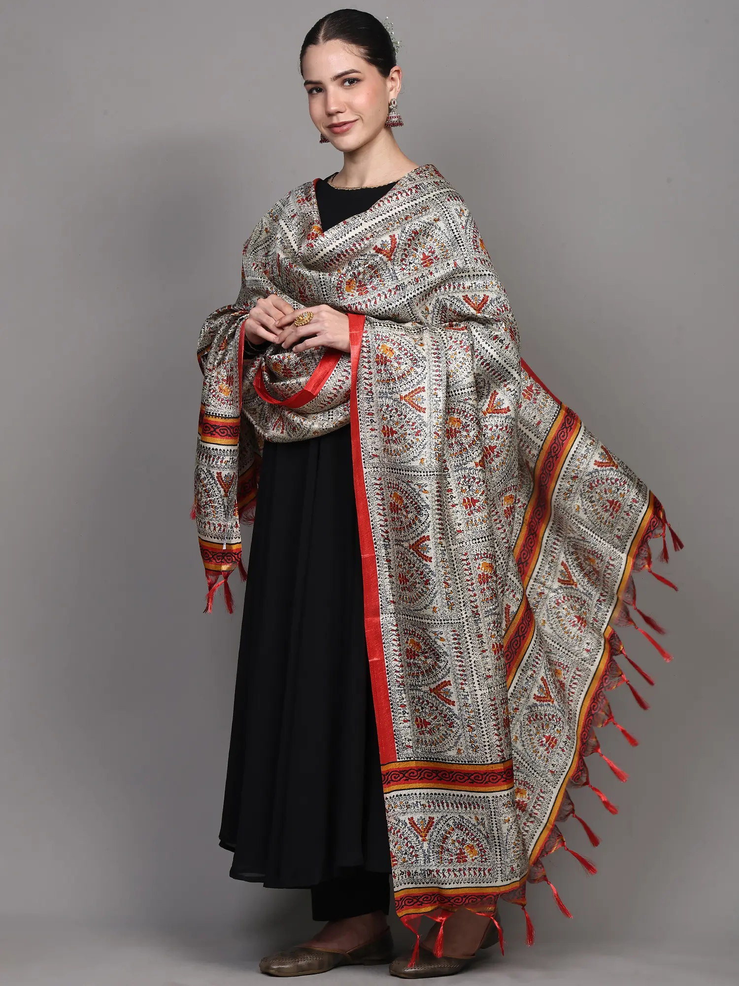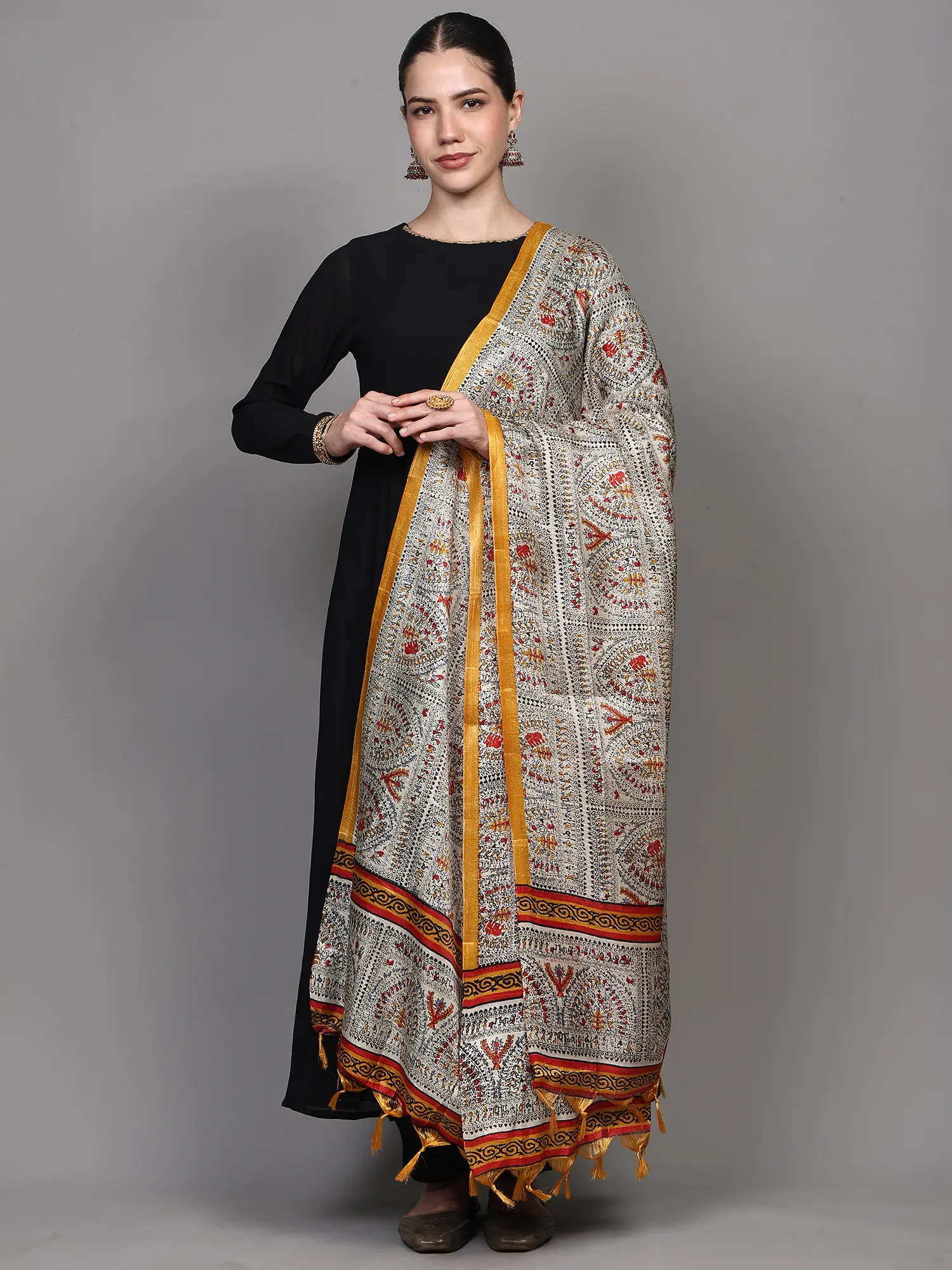 Art Silk Dupatta with Printed Zig-Zag Pattern and Temple Border