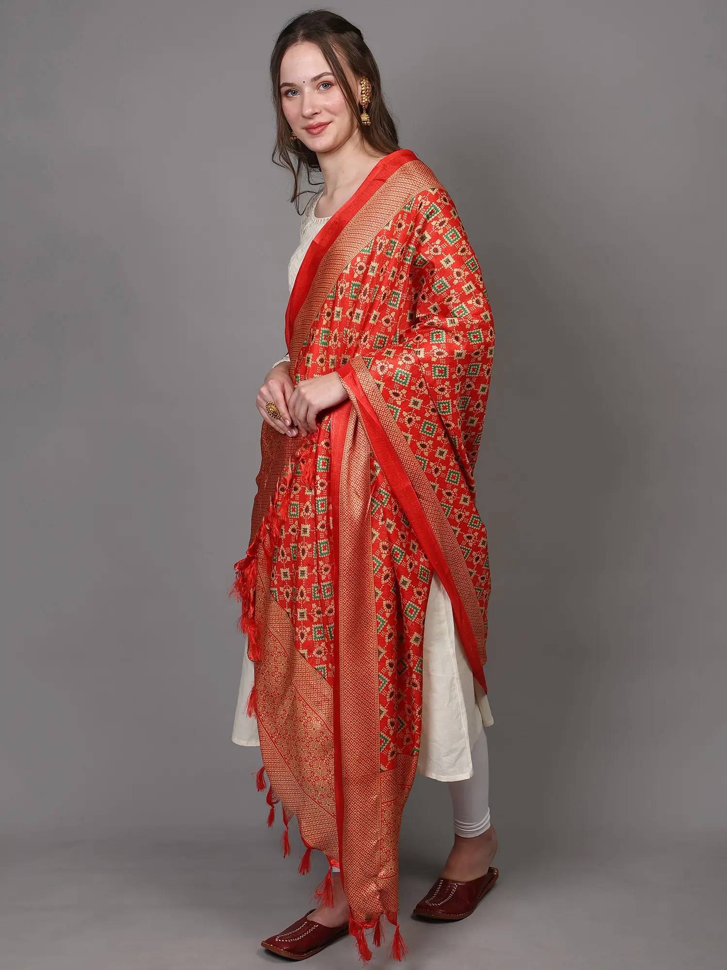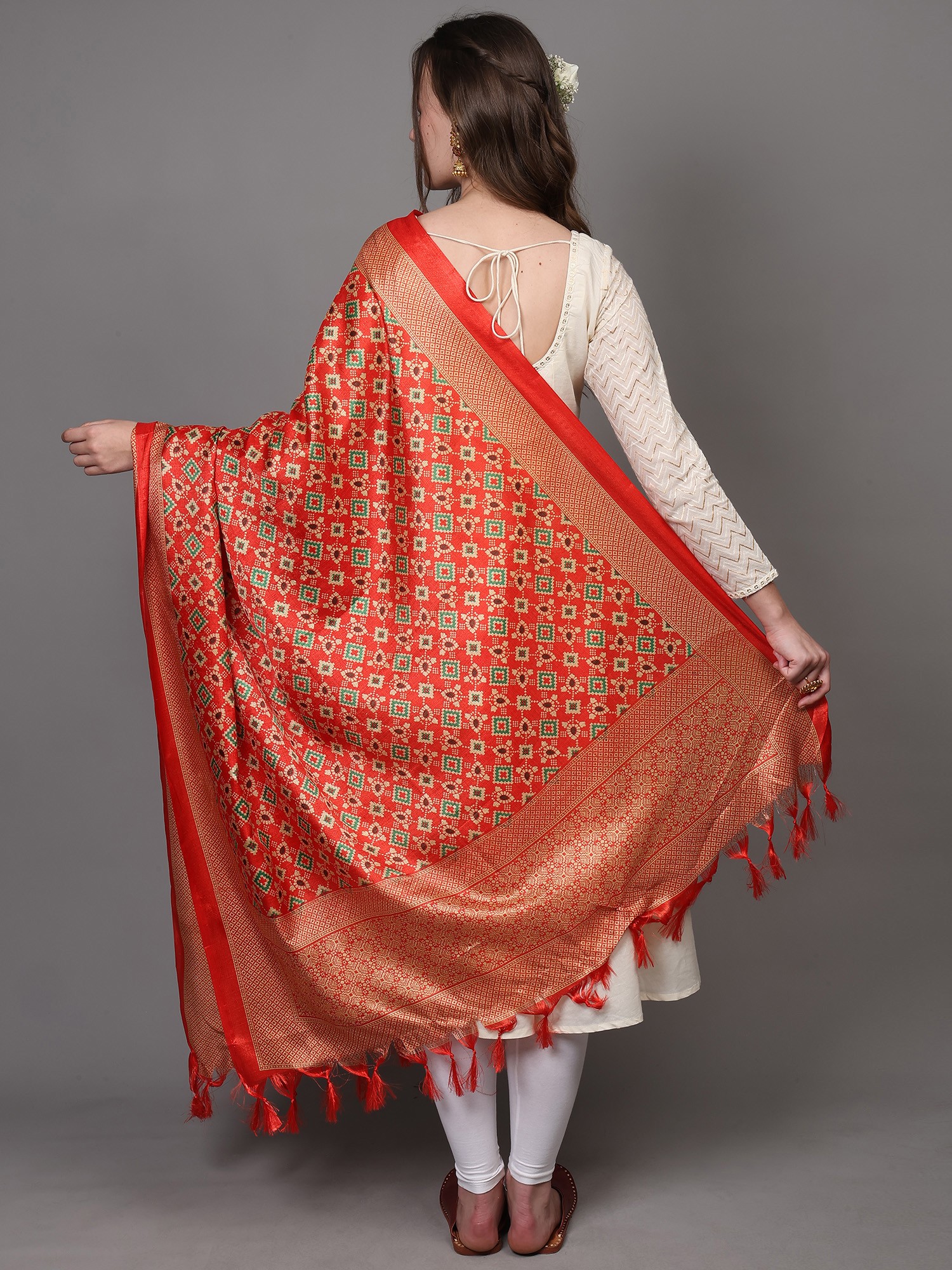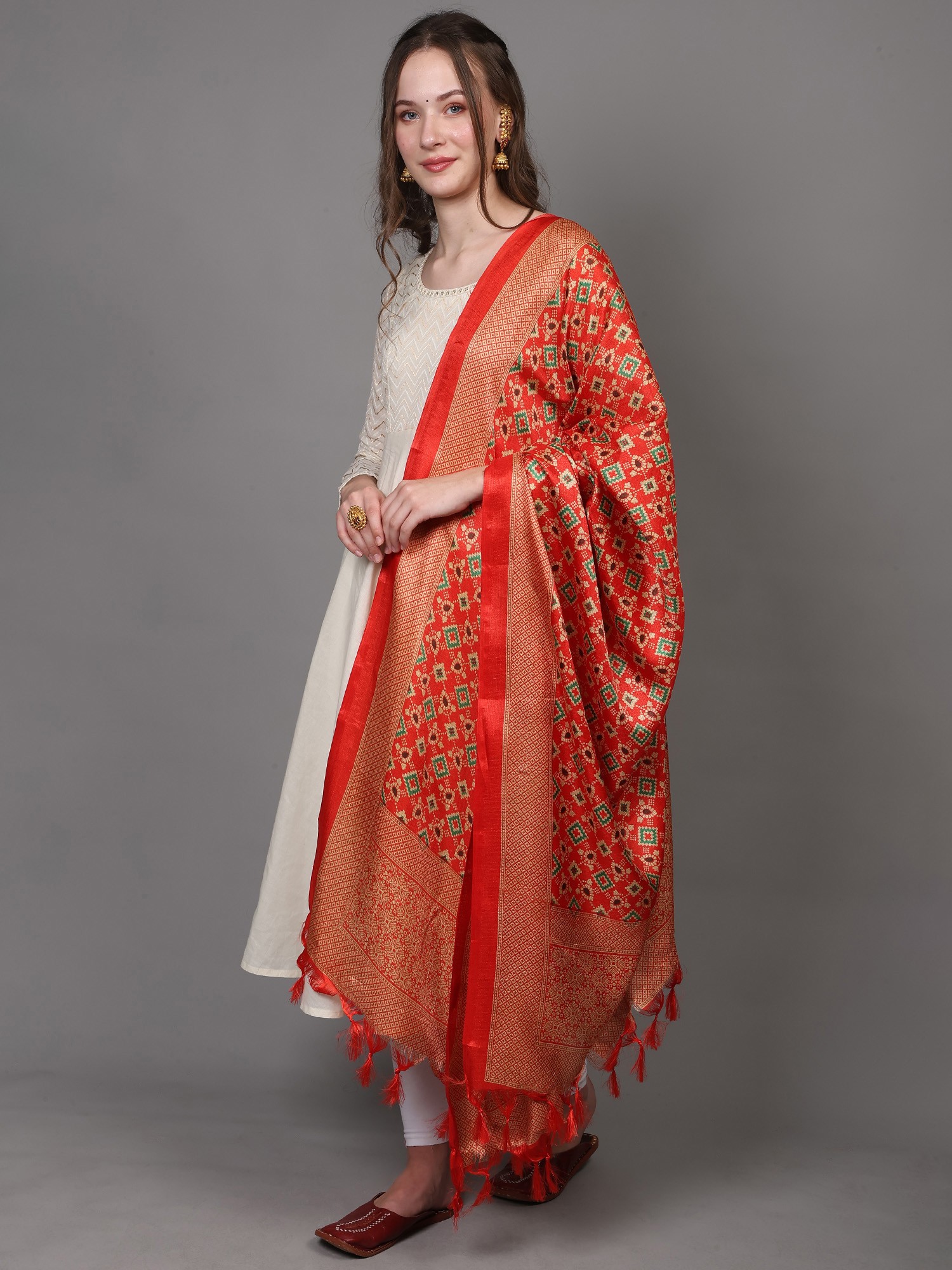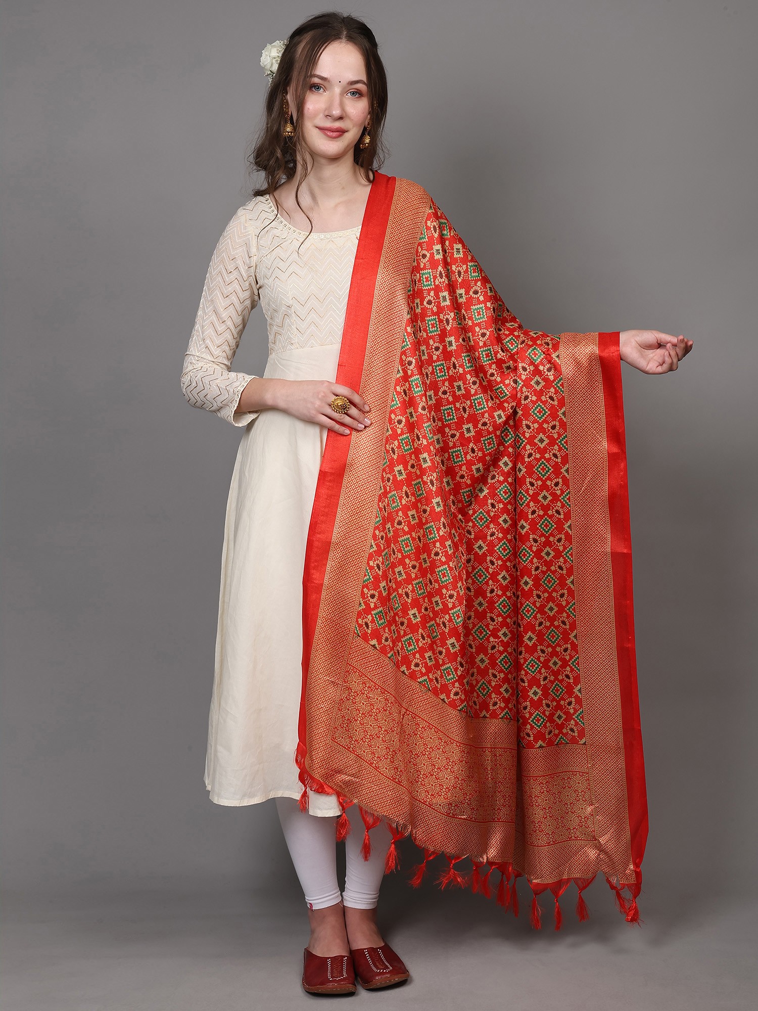 Patola Printed Art Silk Dupatta with Fringes