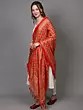 Art Silk Dupatta with Printed Maple Leaves and Chevron Border