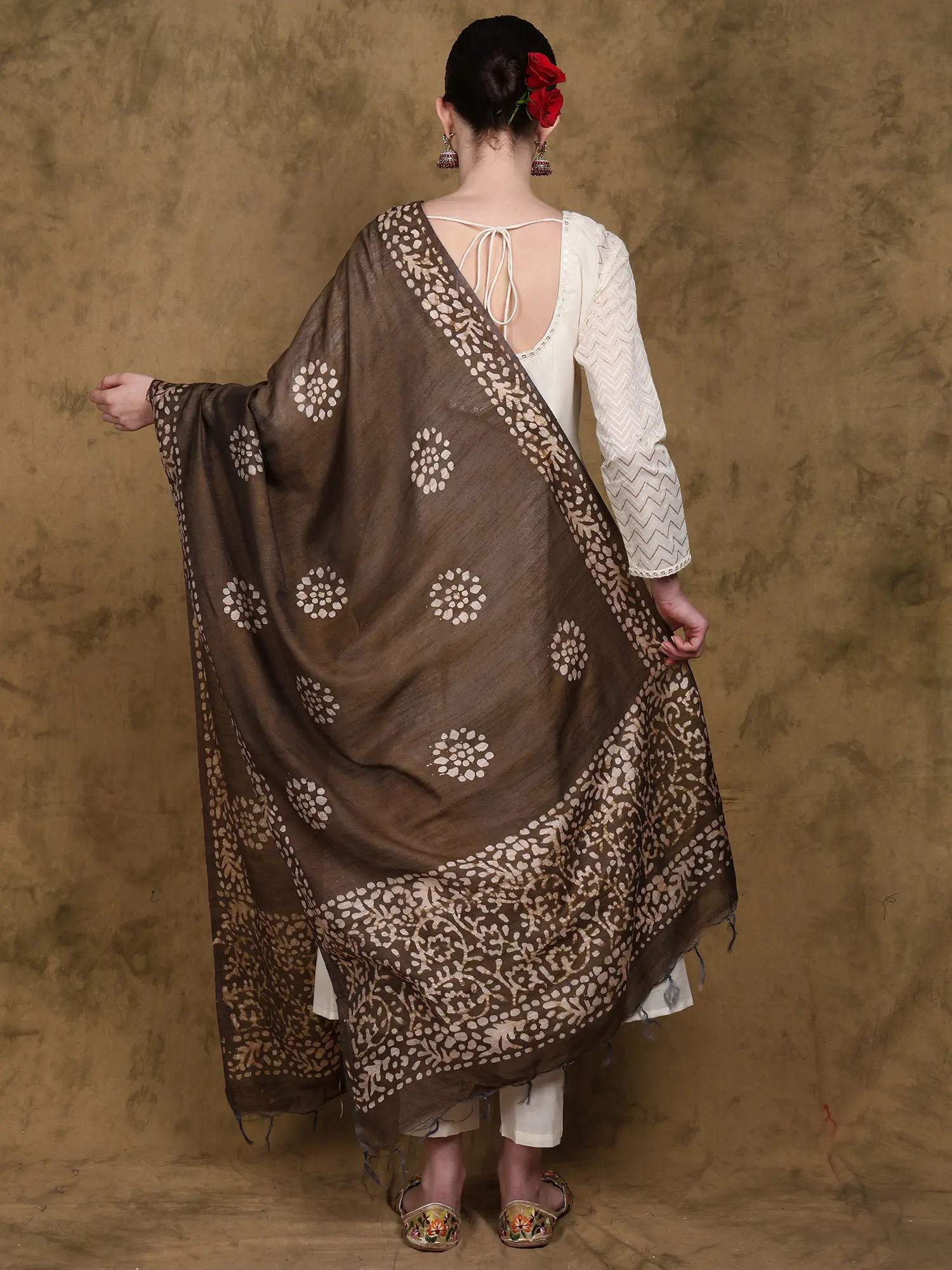 Batik-Dyed Dupatta with Floral Print