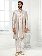 Art Silk Embroidered 3 Piece Indo Western Jacket With Aligadhi Pant For Wedding Festive Celebrations