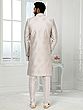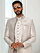 Art Silk Embroidered Printed And Thread Work Three Piece Indo Jacket Set With Aligarhi Pant Wedding Groom Wear