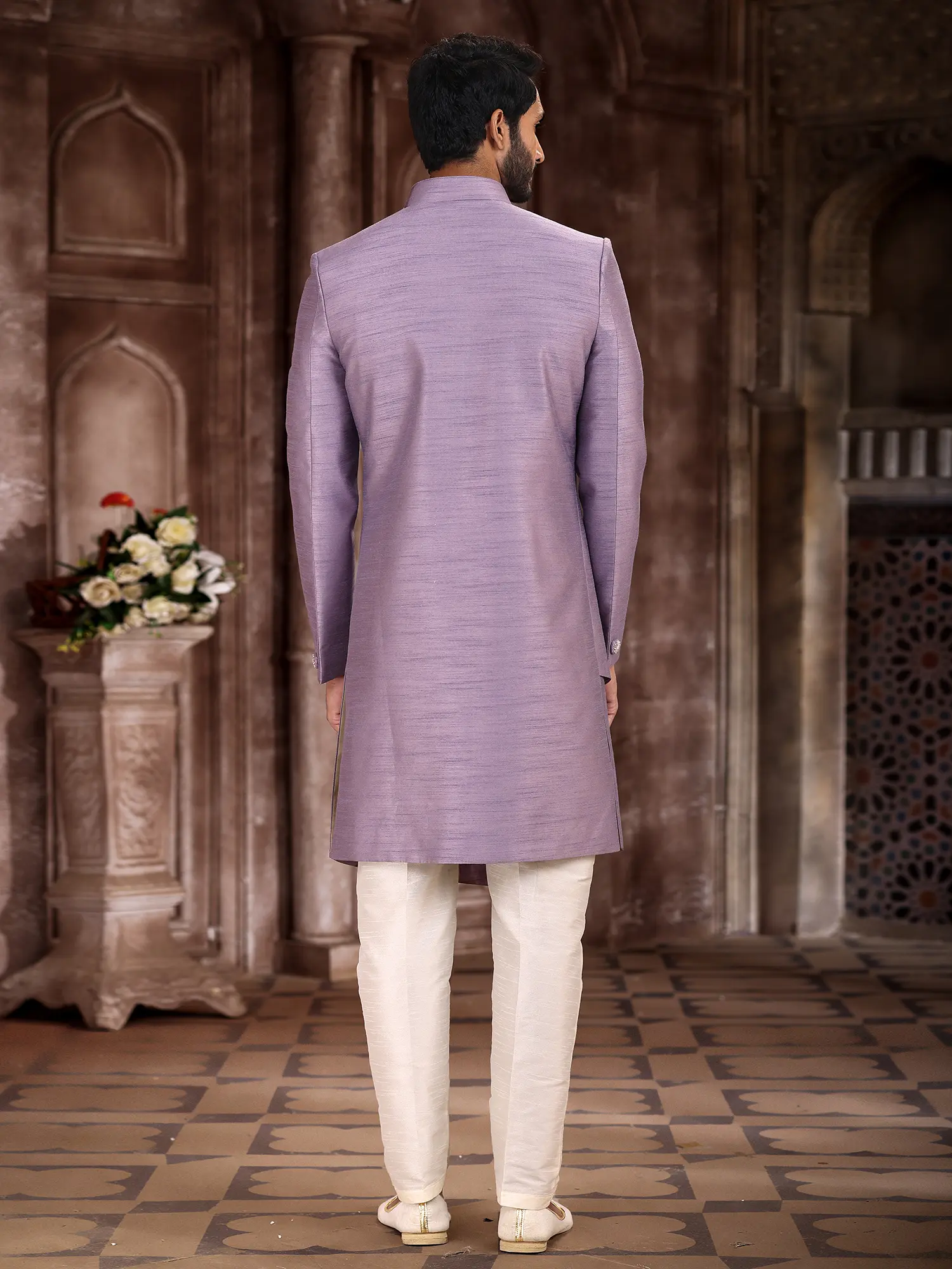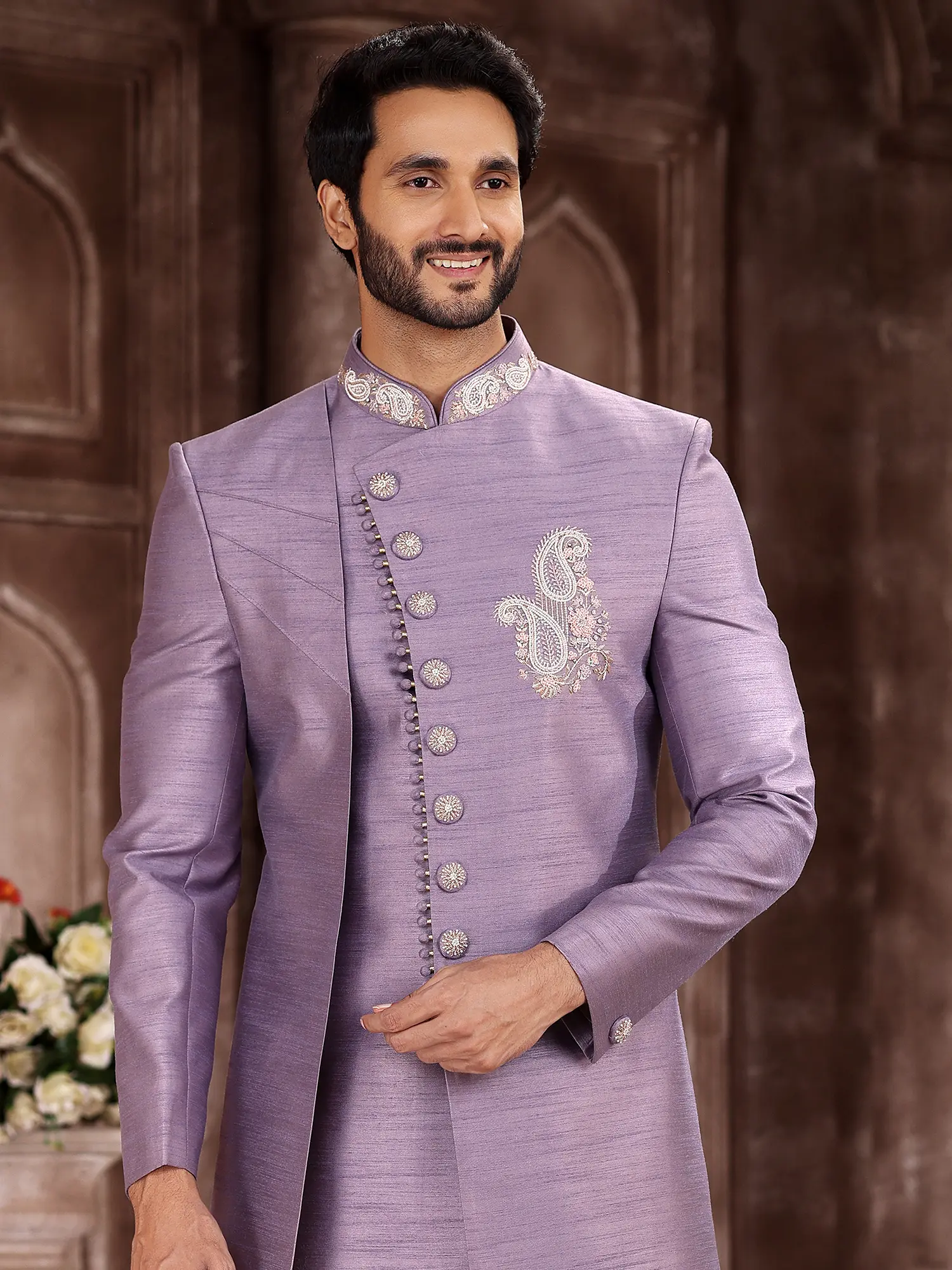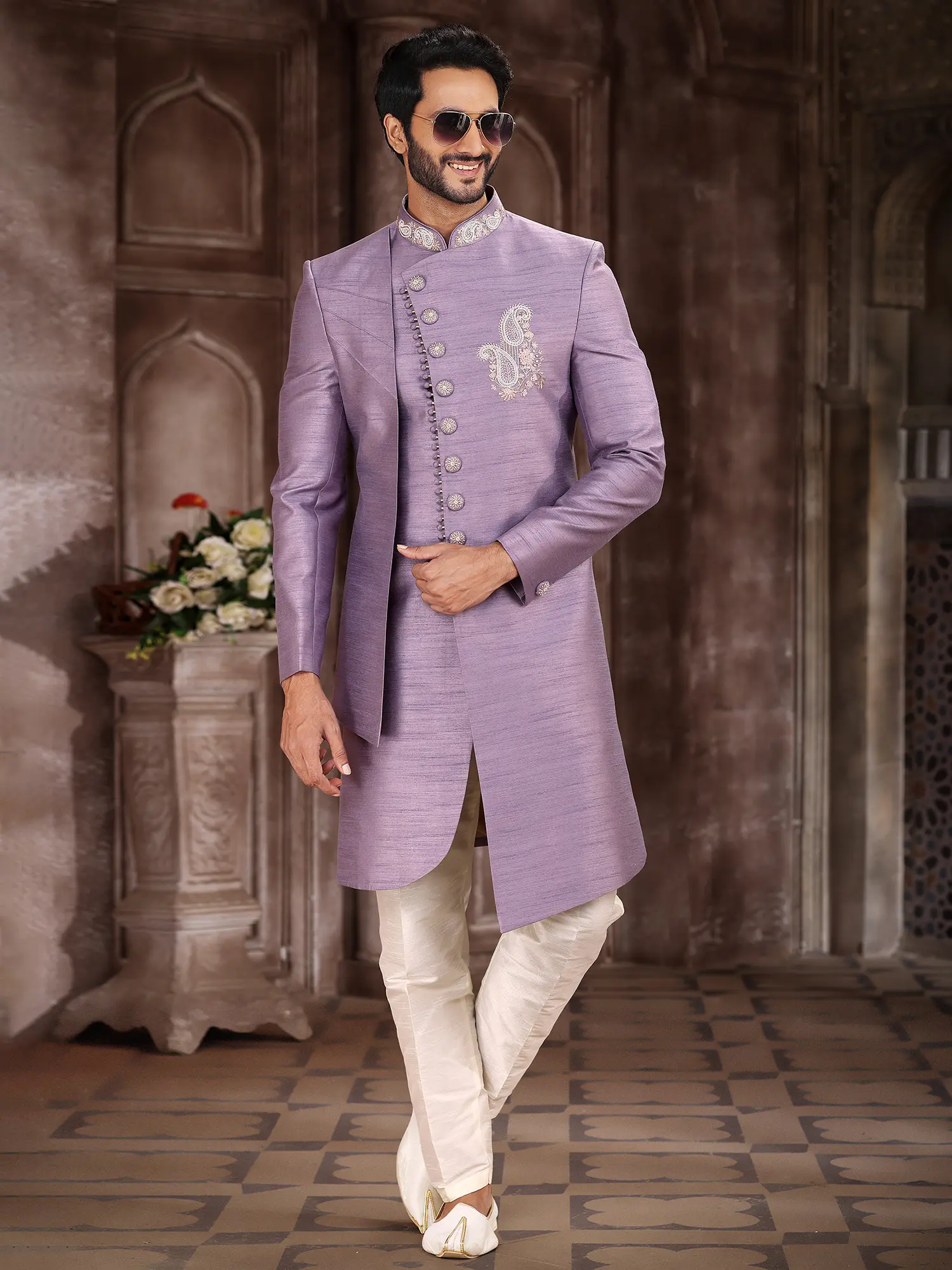Art Silk Embroidered Sherwani Aligarhi Pant Set Stands Out With Simple Elegance For Wedding Grooms
