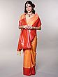 Cinnamon-Stick Temple Border Saree from Bangalore with Woven Ethnic Motifs in Copper Colored Thread