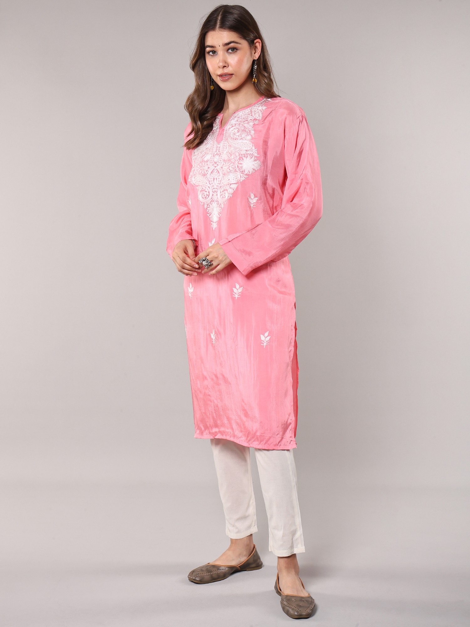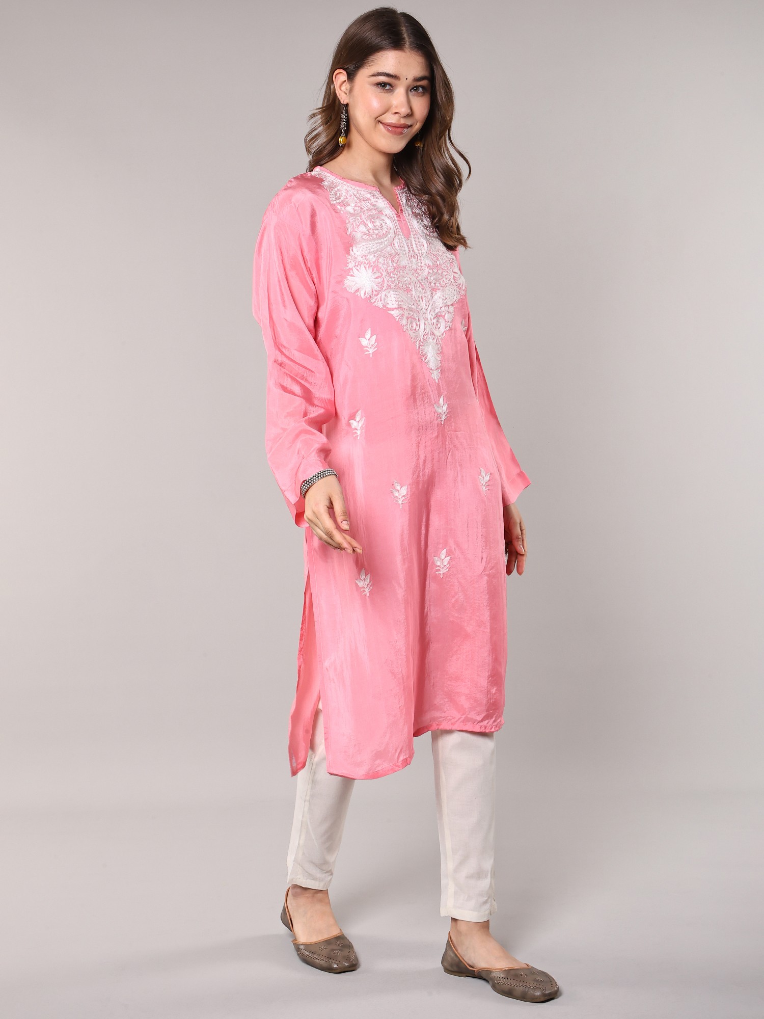 Kurti with Lukhnawi Chikan Embroidered Flowers and Sequins