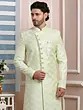Exquisite Art Silk Thread Work Indo Western Sherwani Featuring Aligadhi Pant For Festive Wedding Affairs