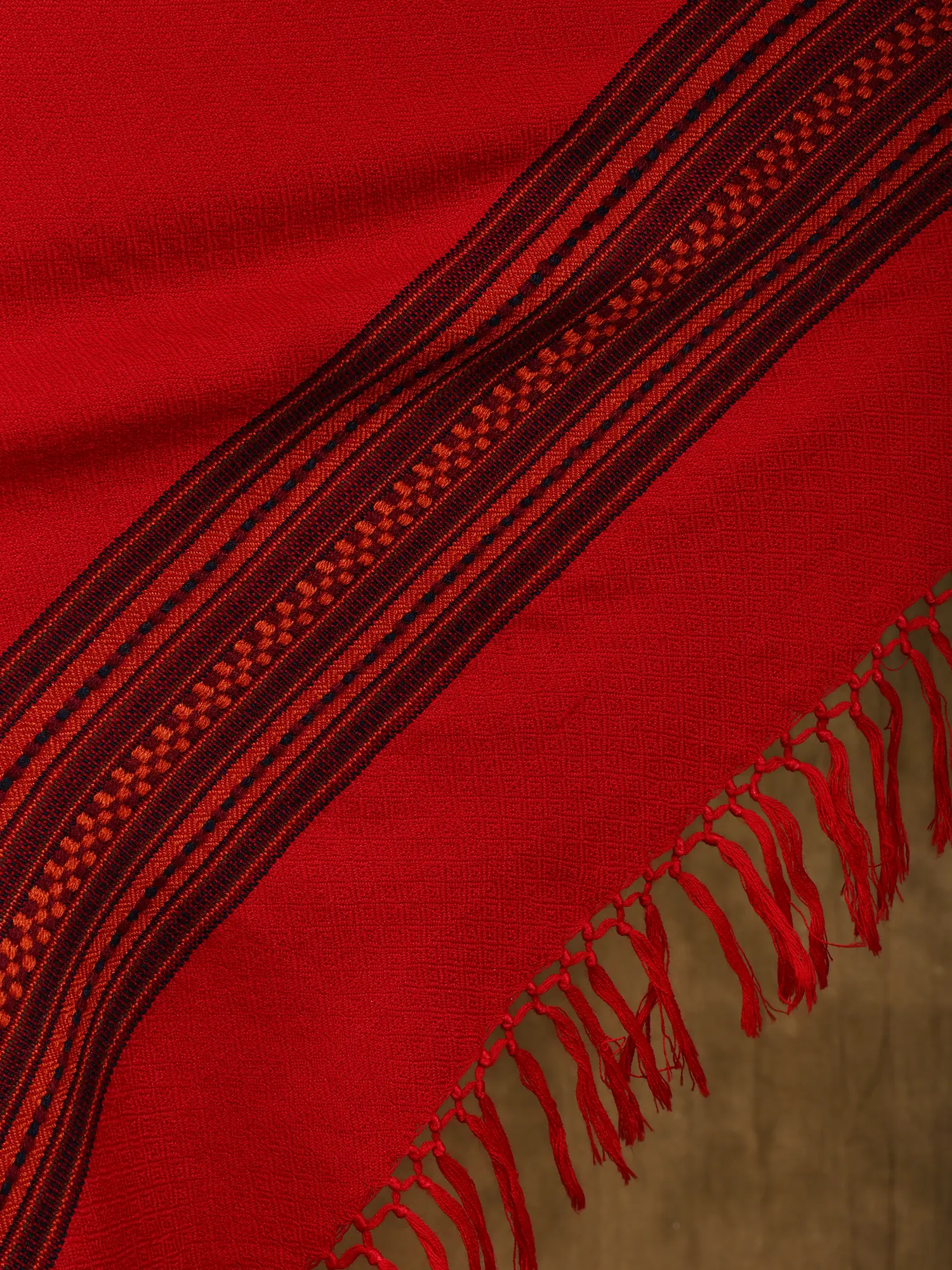 Artisan Woven Wool Stole with Geometric Border