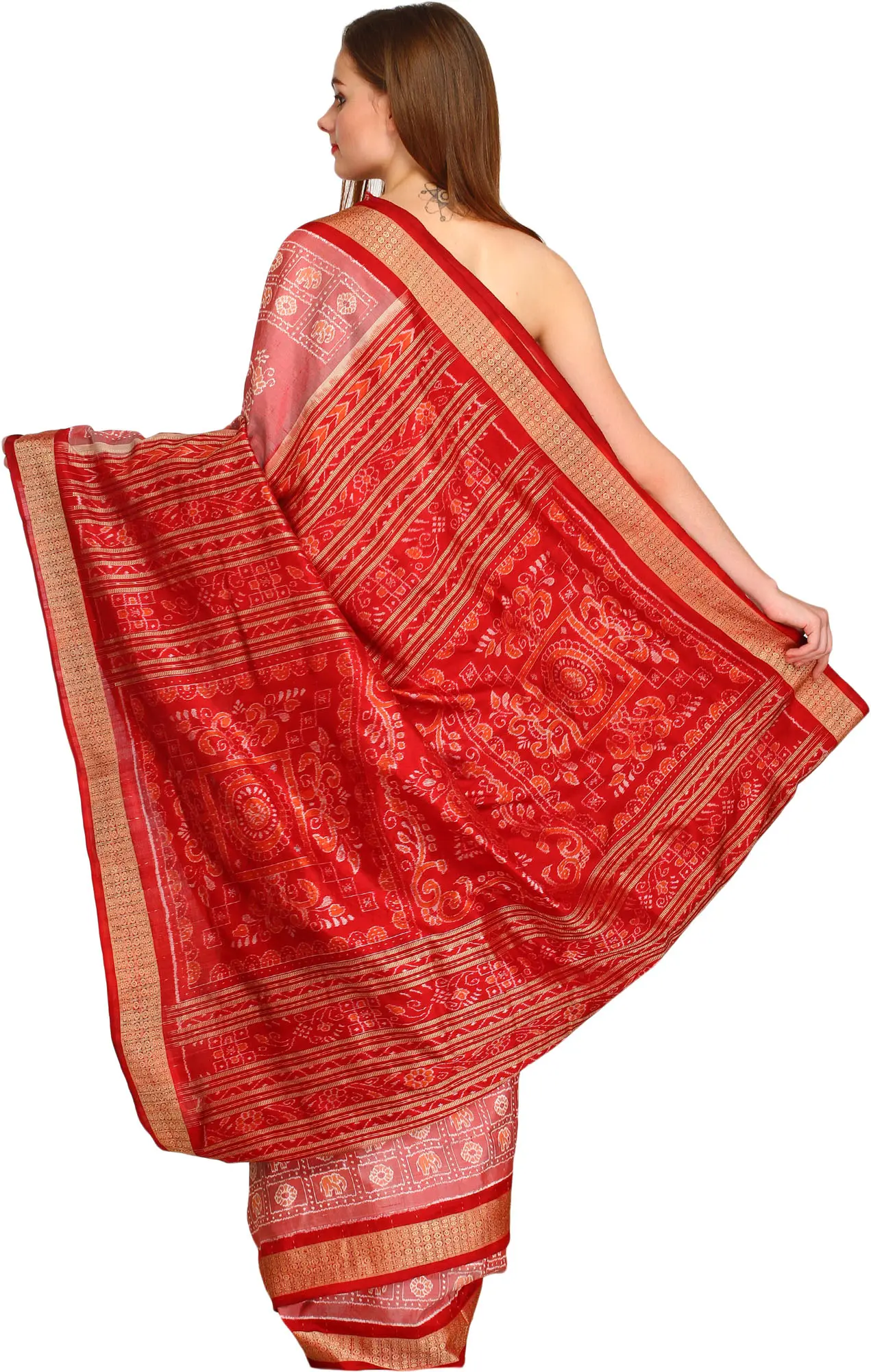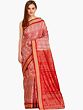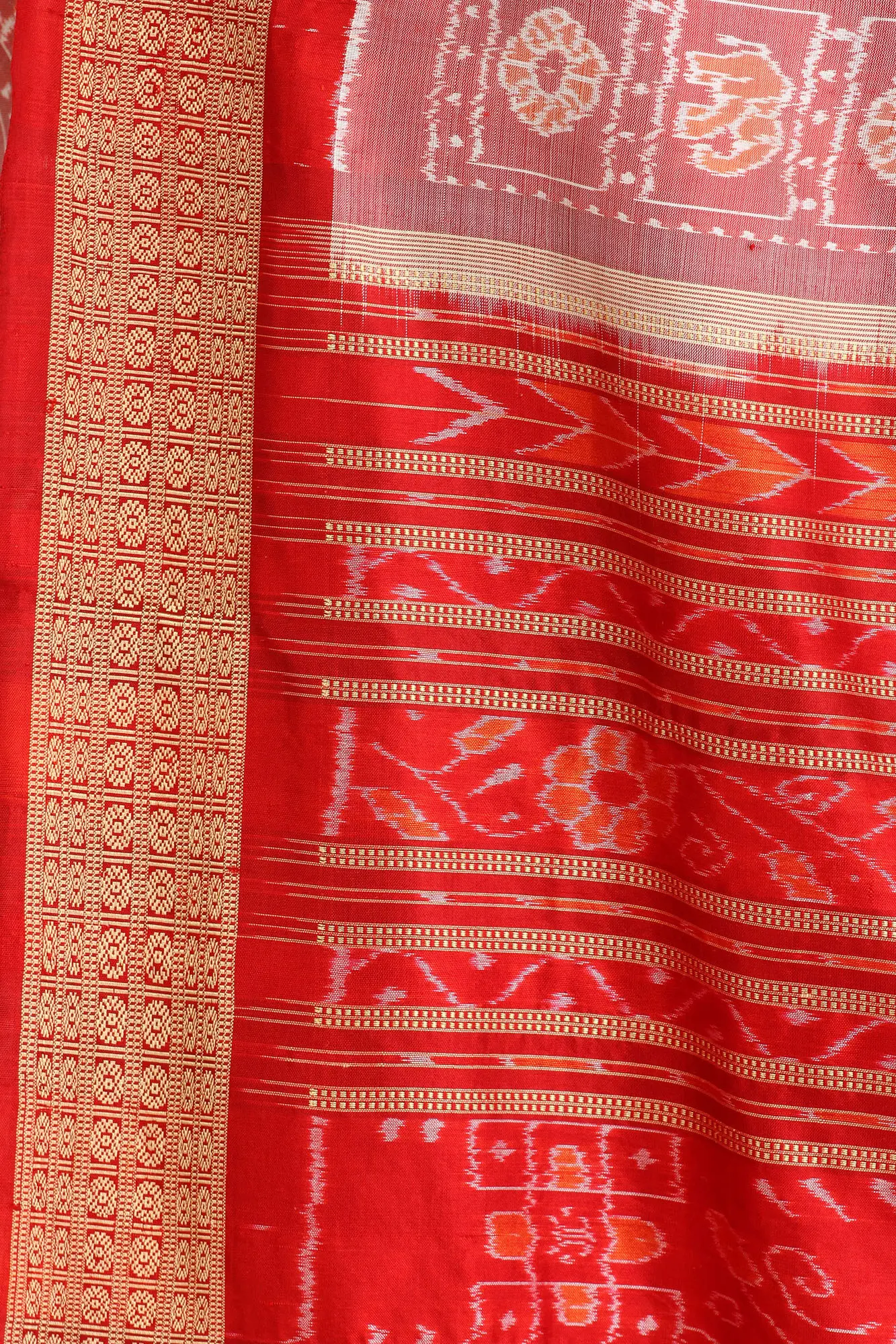 Gray and Sienna Pure Cotton Ikat Handloom Sambhalpuri Saree with Woven Rudraksha Border