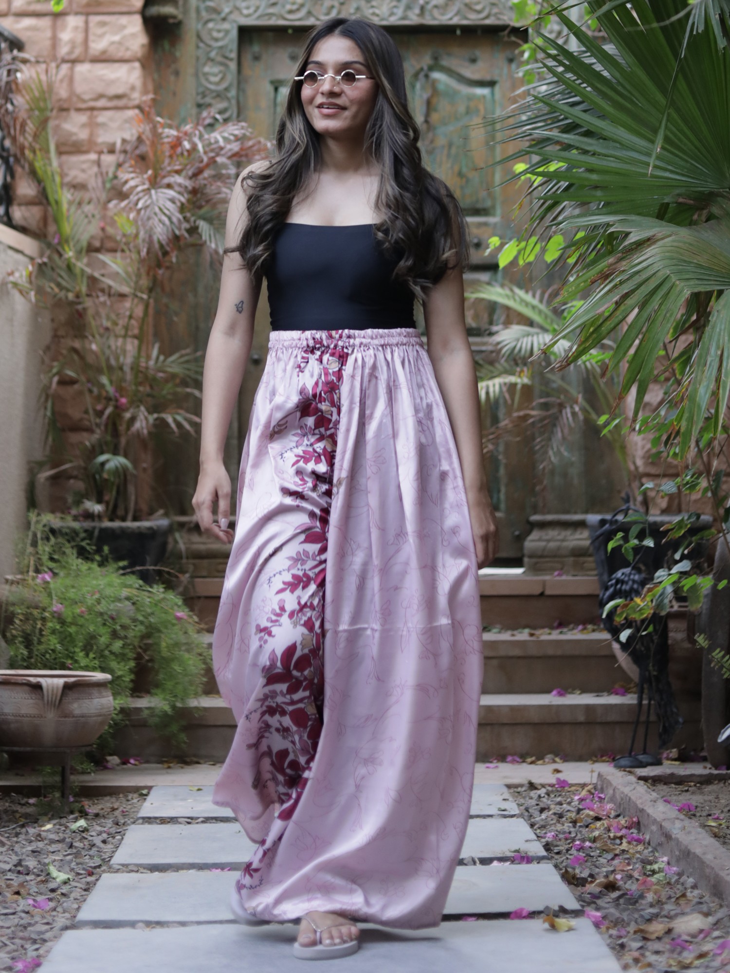 Luxury becomes effortless with this assorted vintage pure silk palazzo from Jodhpur. The silken fabrics allow for a voluminous yet breathable tailoring, which is embellished with ethnic Indian motifs to offer you a traditional and trendy vibe.