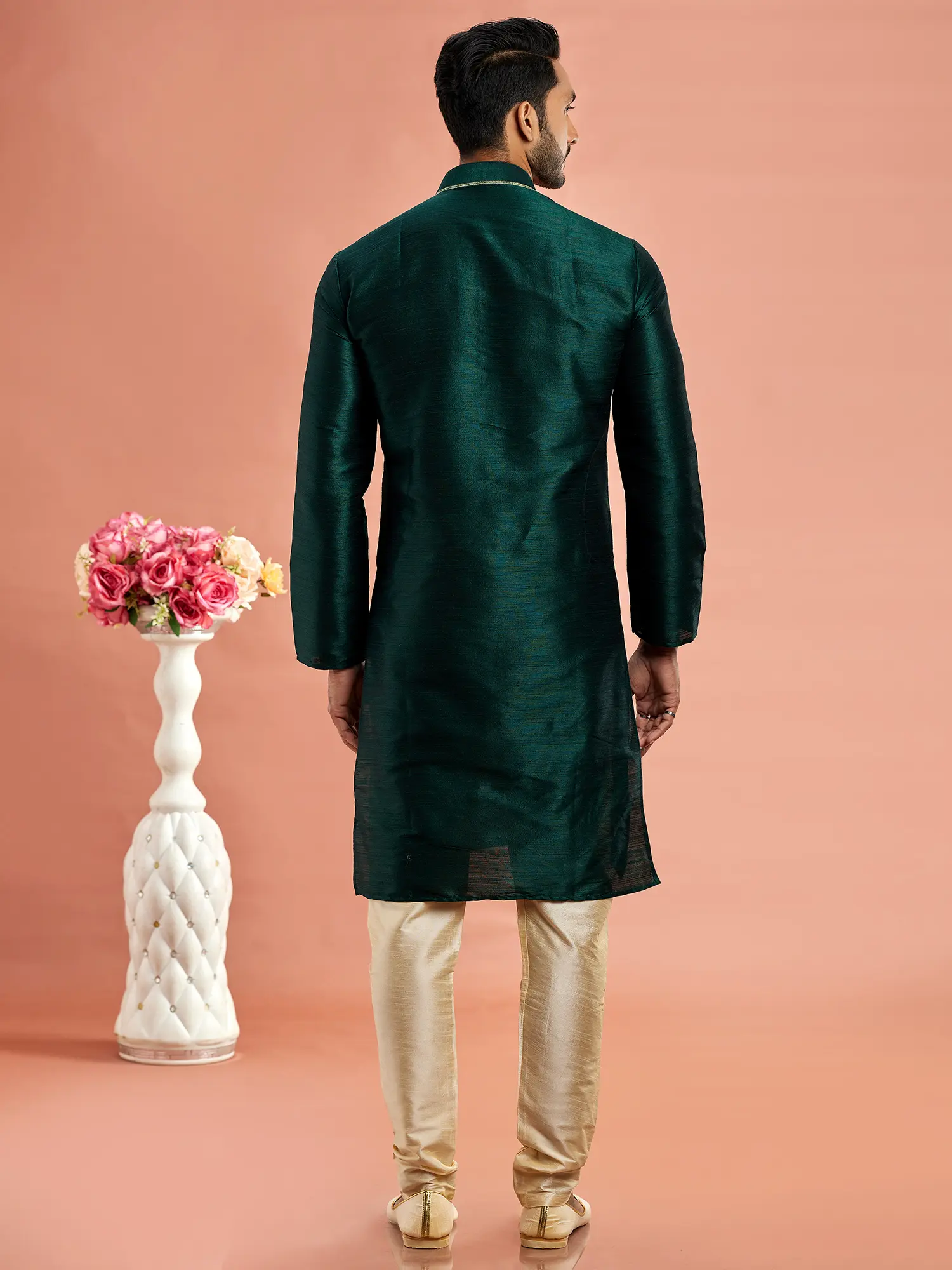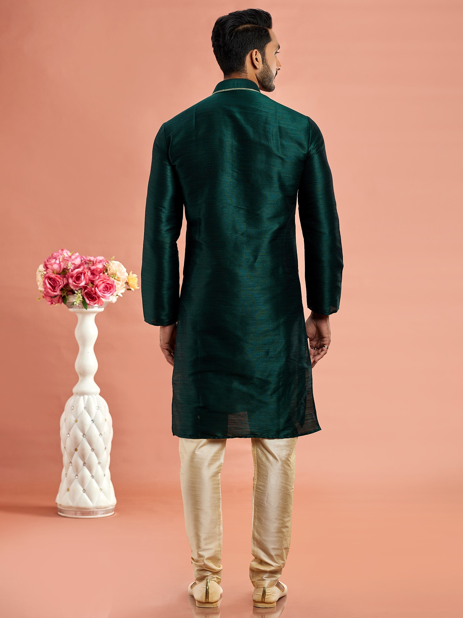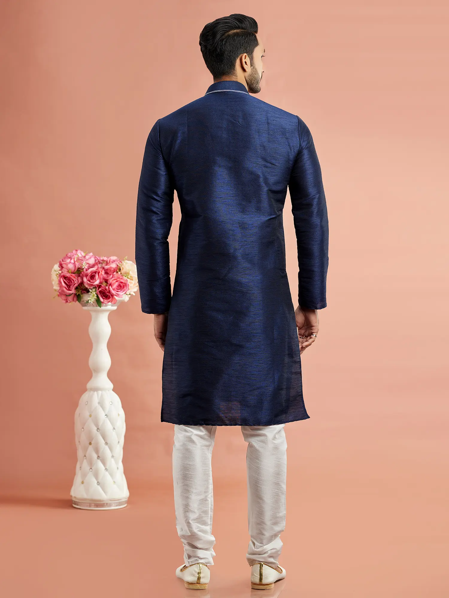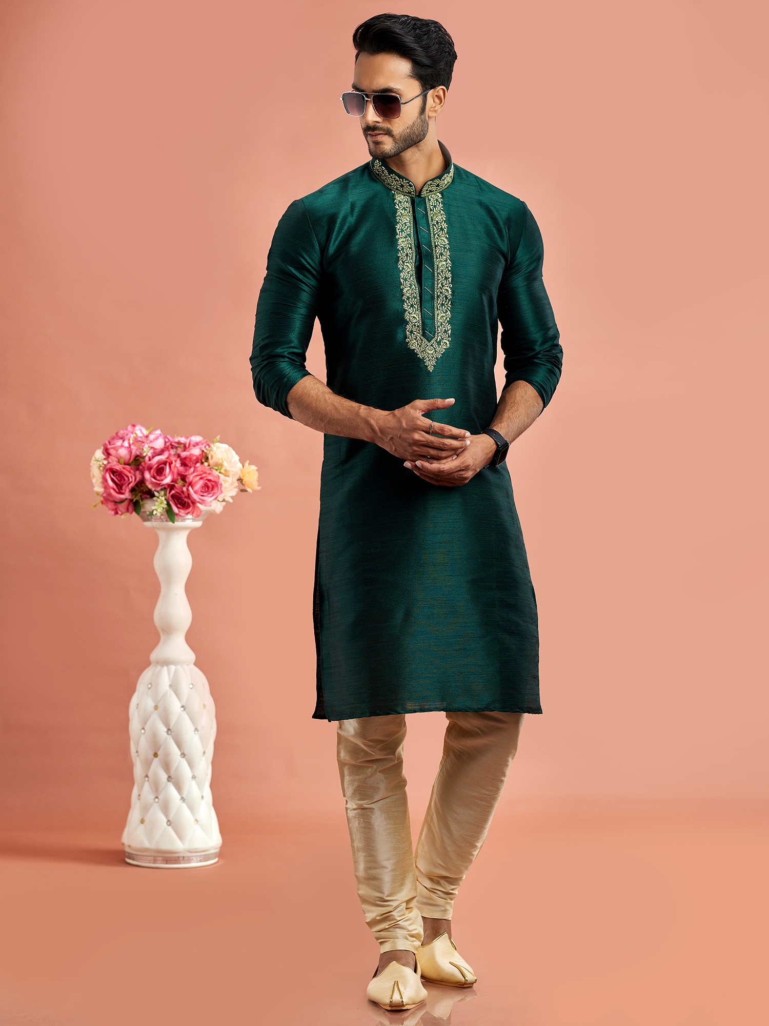 Banarasi Art Silk Embroidery Work Straight Kurta Mandarin Collar Kurta Pajama Set