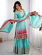 Sequins And Embroidery Work Attractive Chinon Kurti Sharara Set With Dupatta