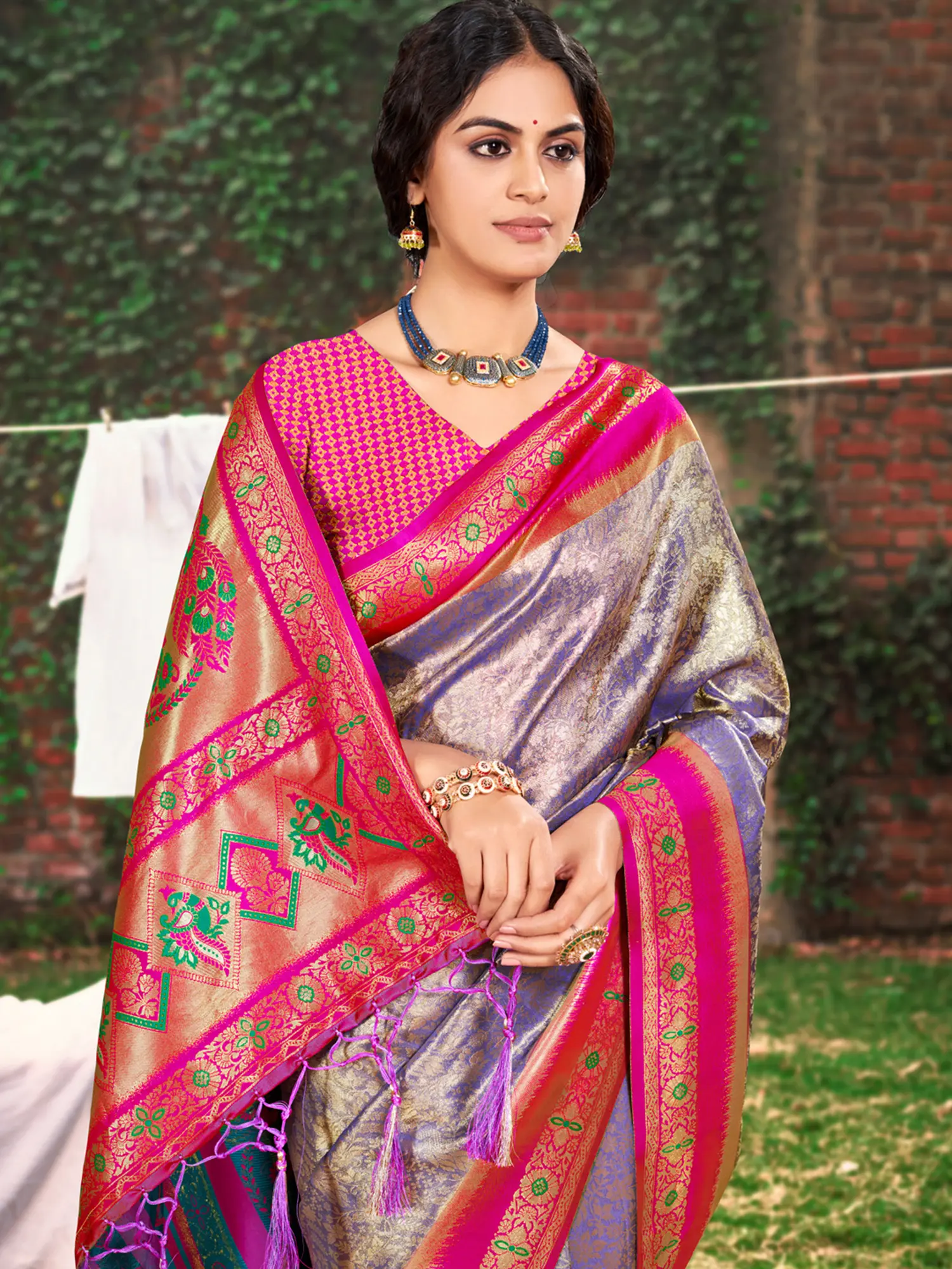Ethnic Motifs Weaving Work Attractive Silk Saree With Matching Blouse