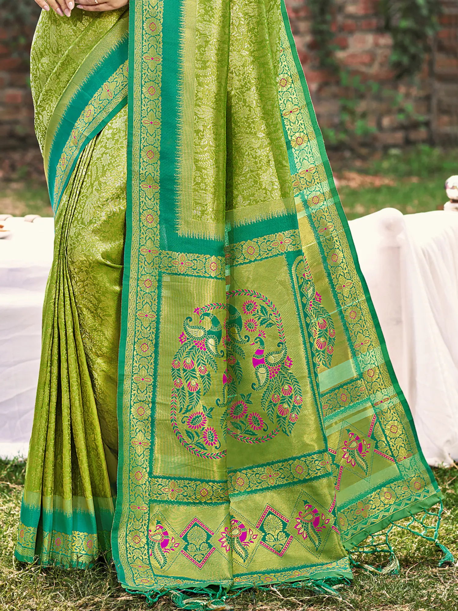 Weaving Work All Over Floral Motifs Attractive Festive Wear Silk Saree