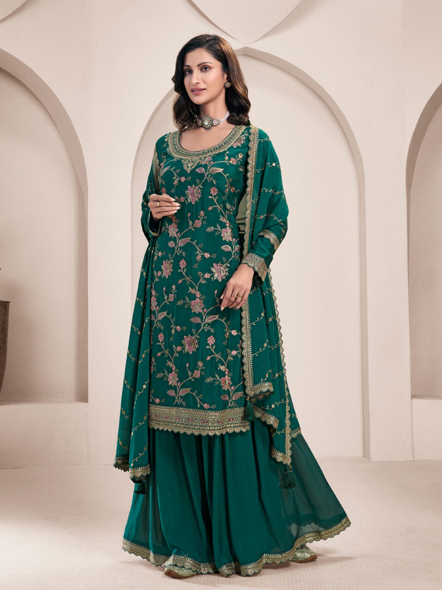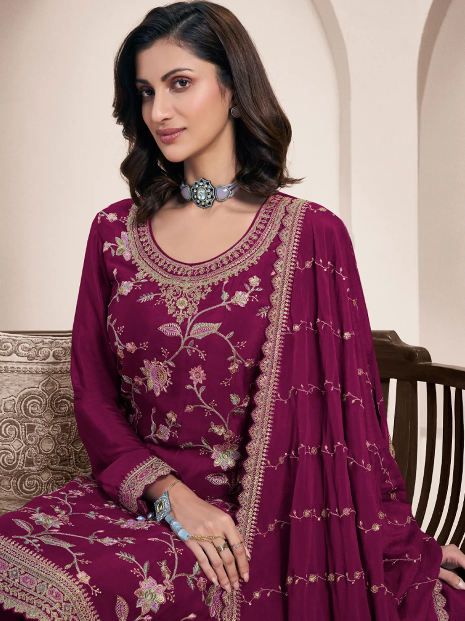 Three Piece Kani Jamawar Salwar Kameez Fabric from Amritsar with Dupatta and Zari Woven Vines