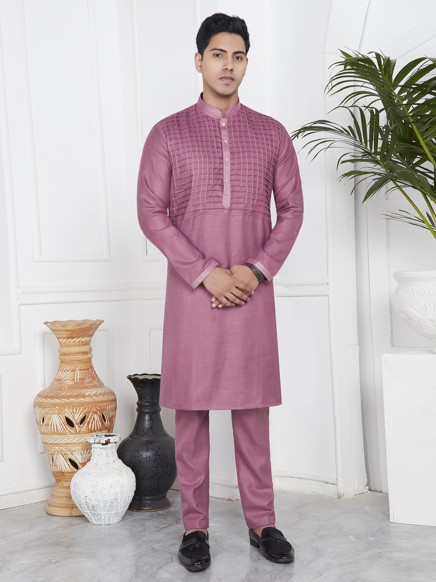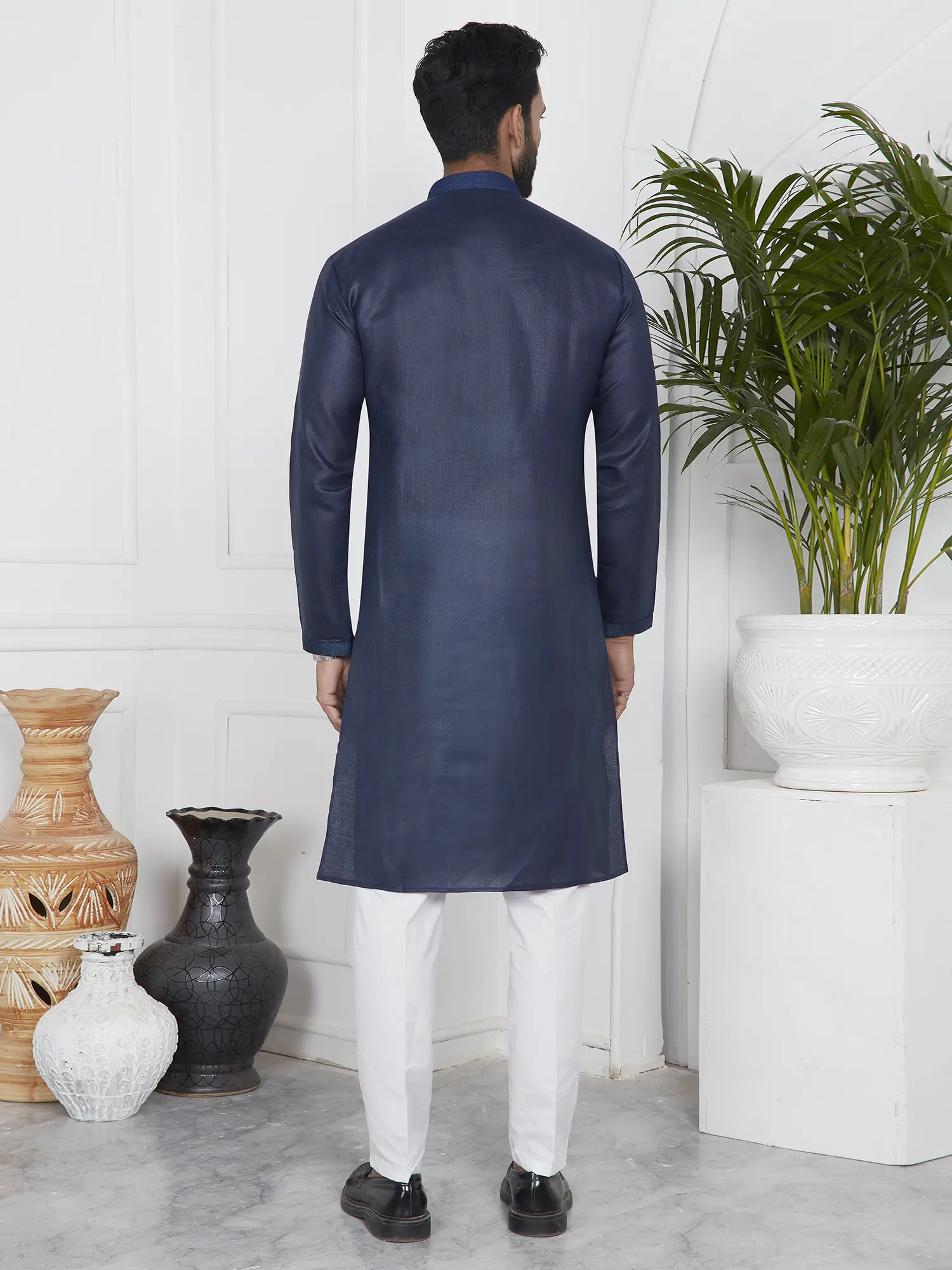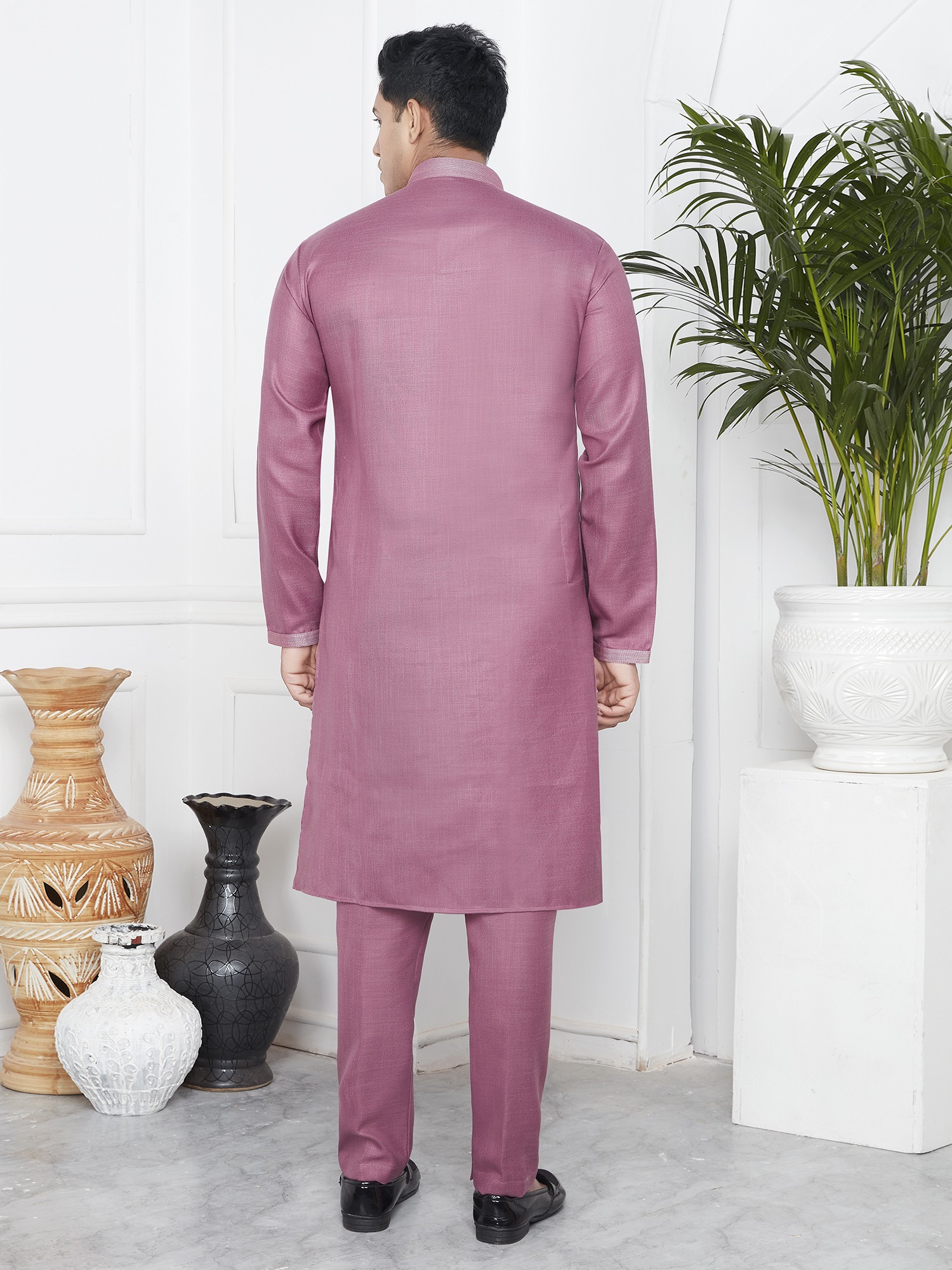 Festive Wear Mandarin Collar Attractive Straight Art Silk Kurta With Pajama