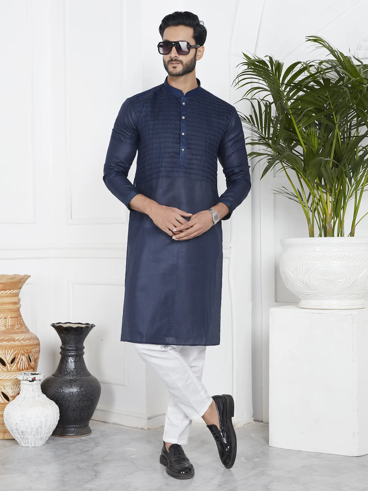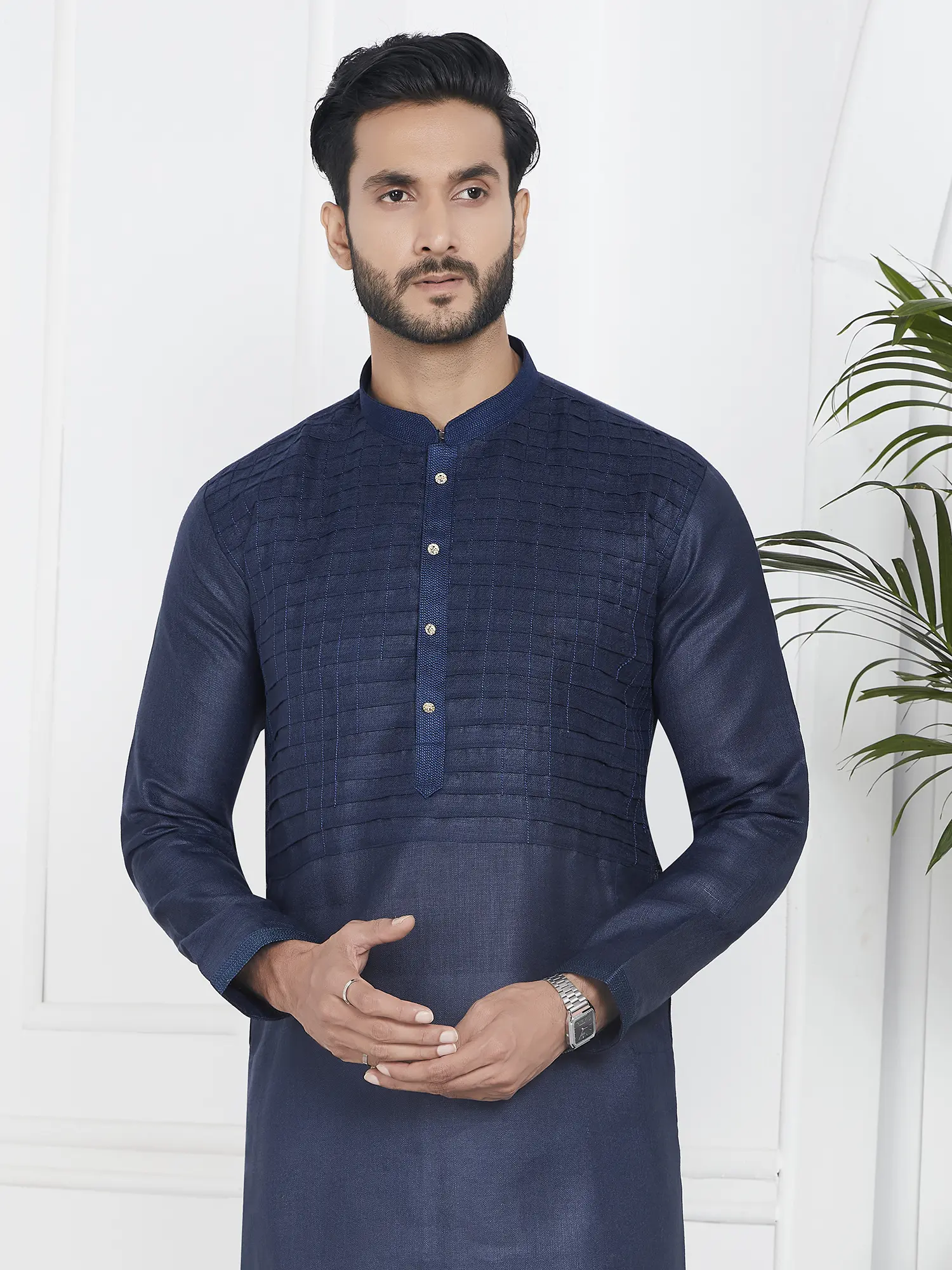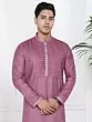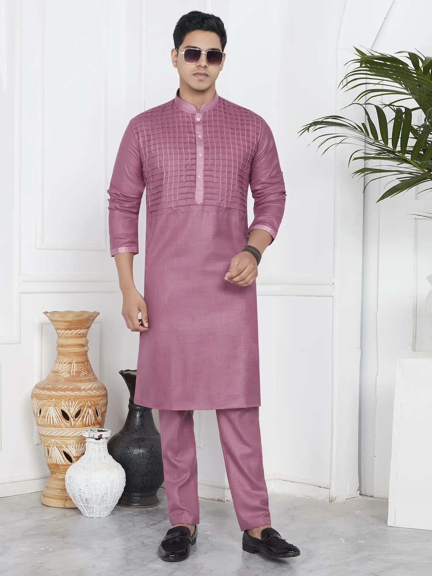 Festive Wear Mandarin Collar Attractive Straight Art Silk Kurta With Pajama