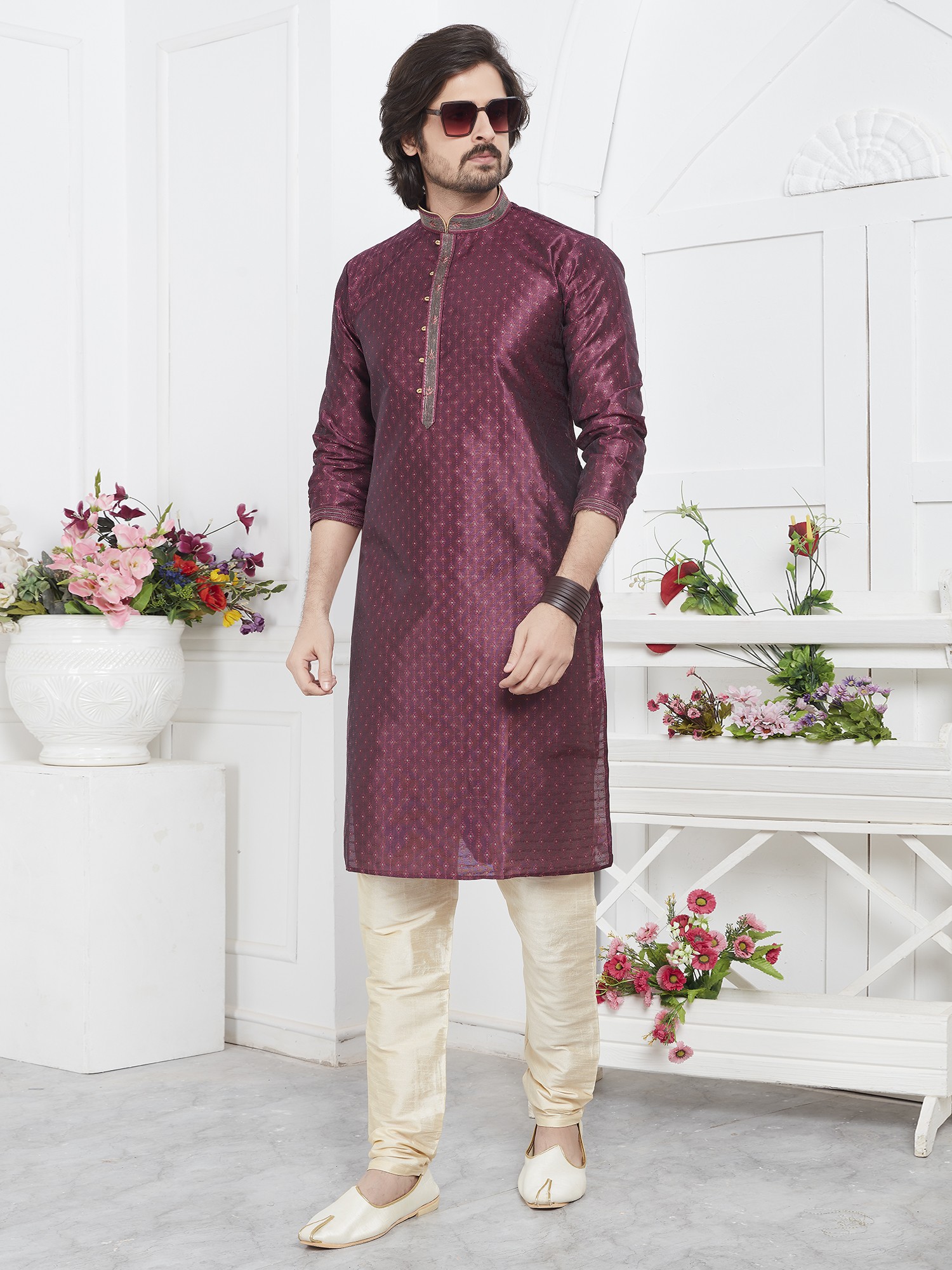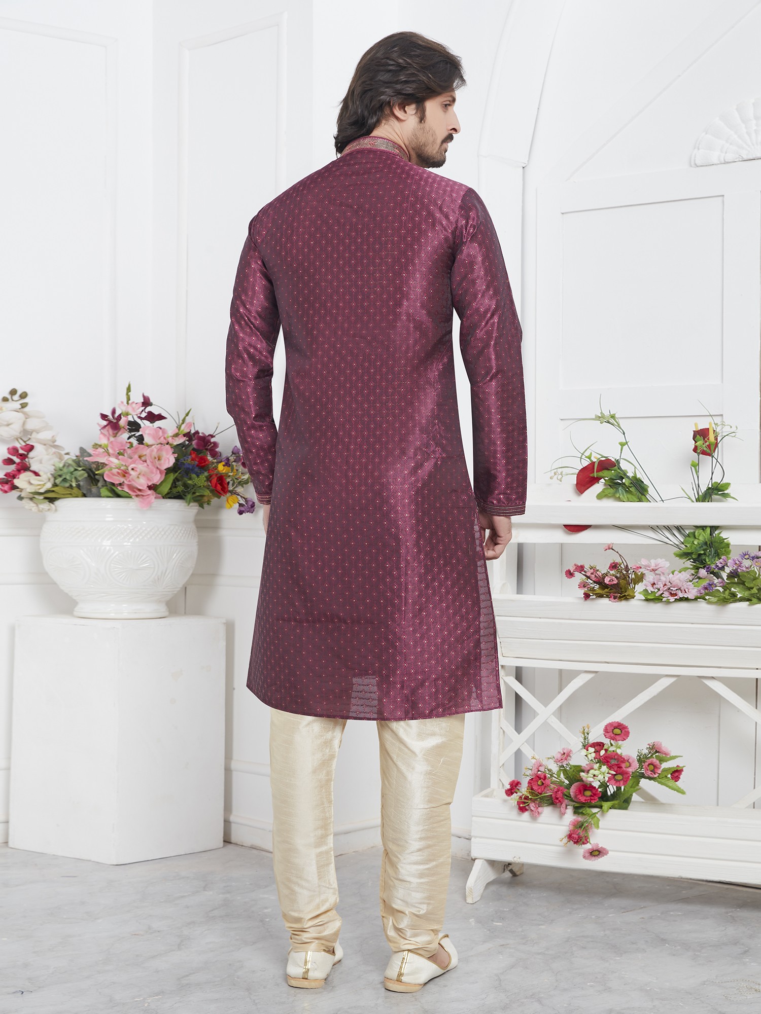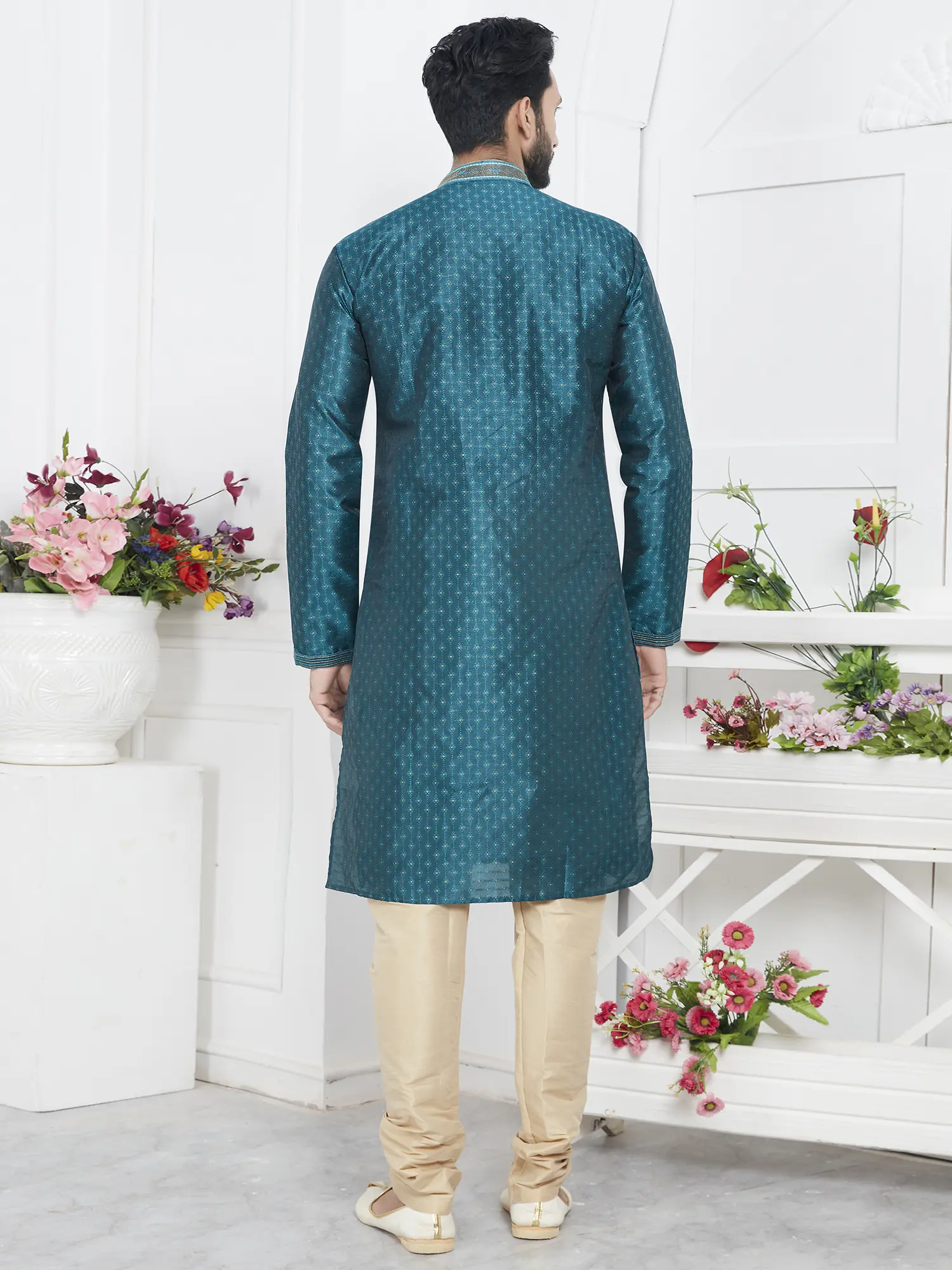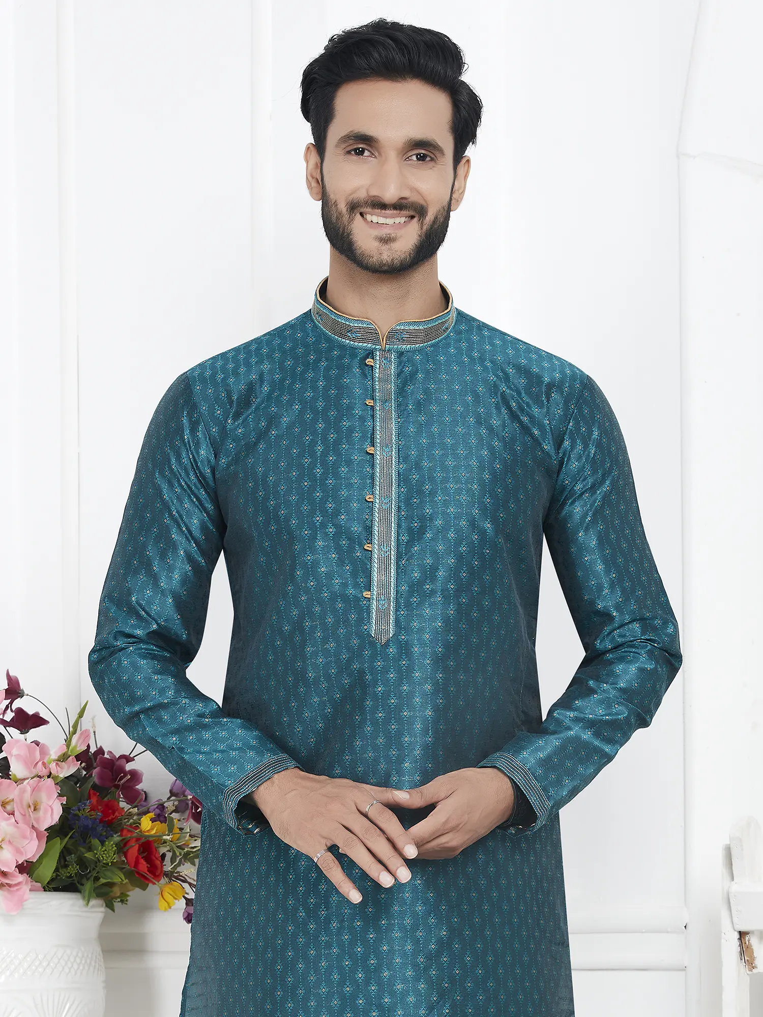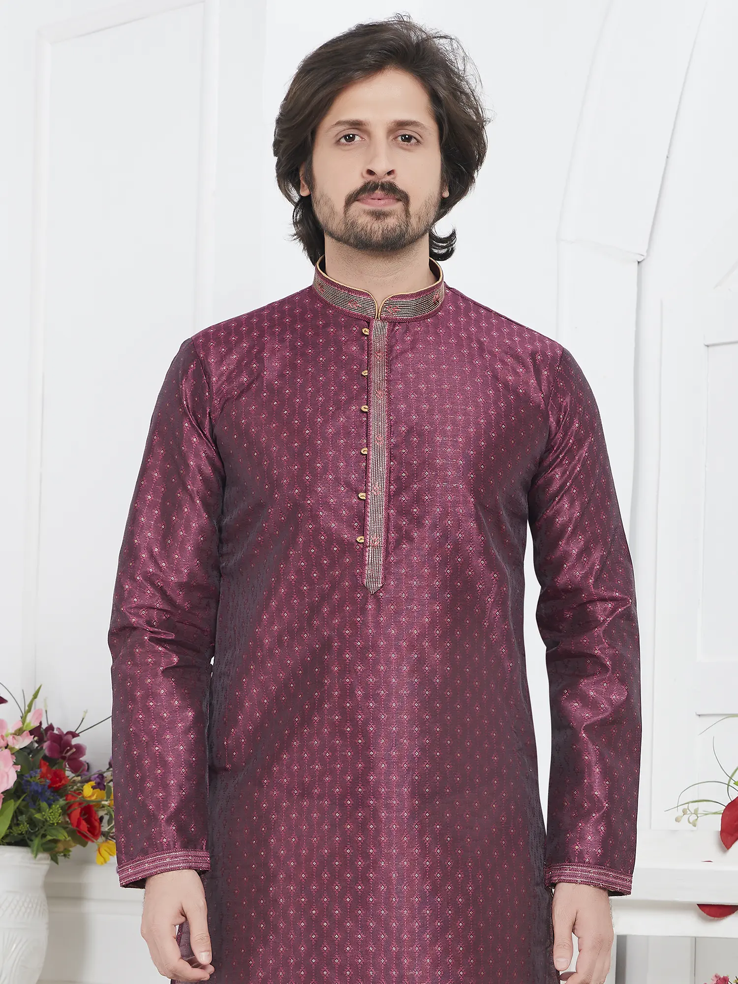 Brocaded Kurta Pajama Set with Floral Motif All-Over