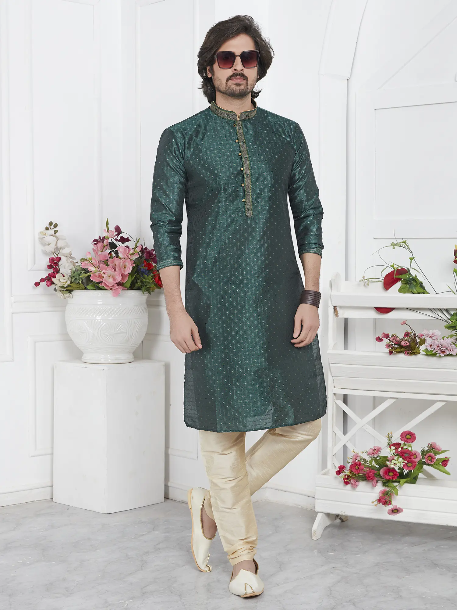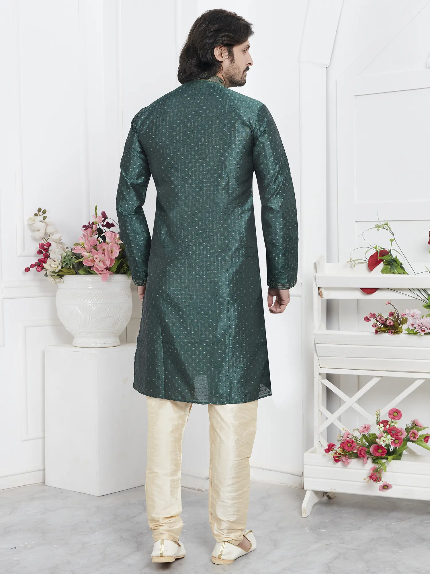 Wedding Kurta Pajama Set with Woven Bootis and Gota Patti on Neck