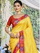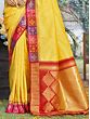 Art Silk Saree with Golden Stripes and Traditional Paisley Motifs All Over