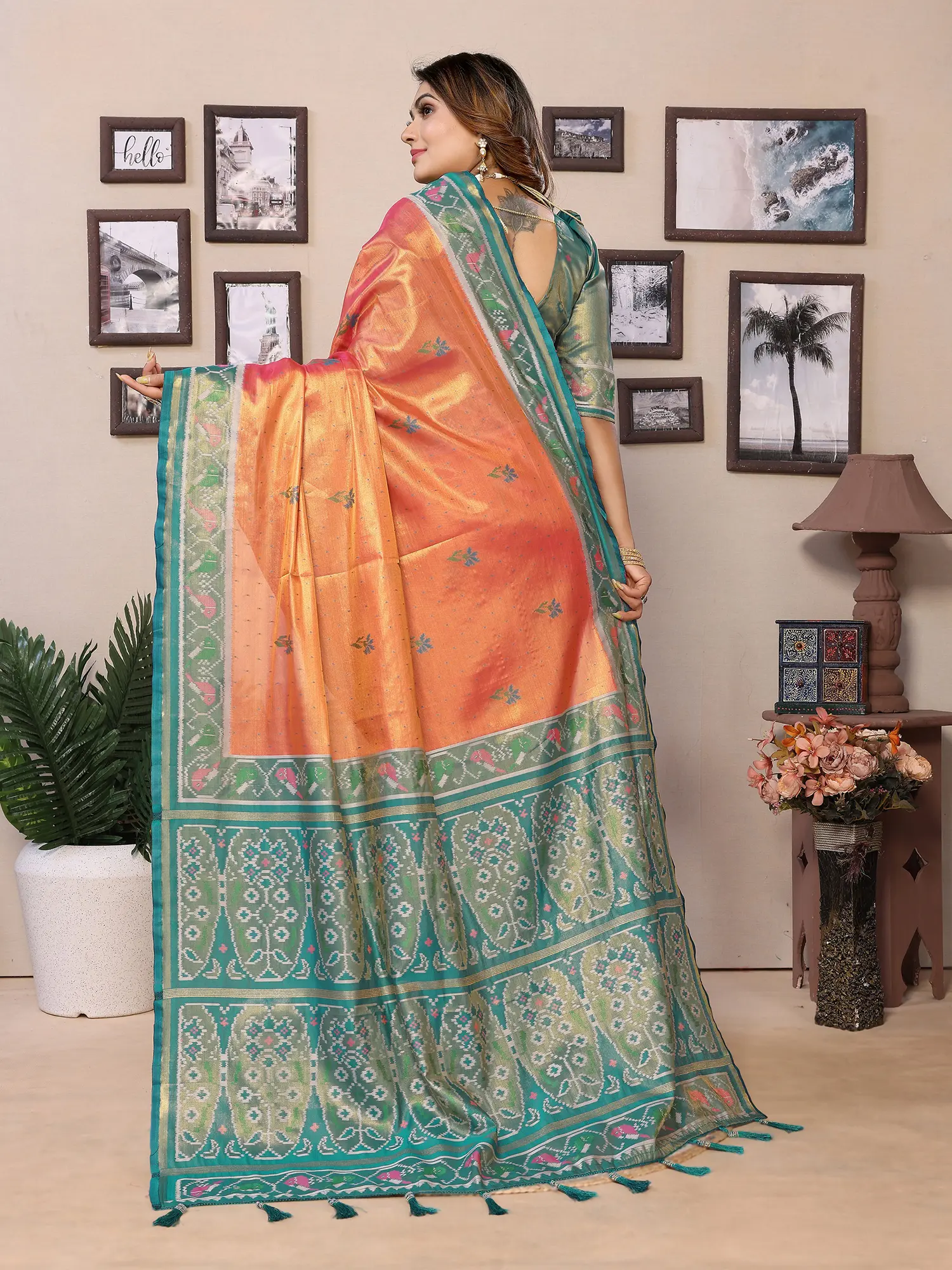 Pure Cotton Saree with Woven Lotus Bootis and Floral Pond Border-Pallu