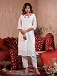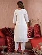 The focal point of the kurta is the delicate embroidery that graces the neckline. The floral motifs, rendered in soft hues, add a touch of femininity and charm. The careful placement of the embroidery enhances the overall design without overwhelming it, maintaining a balance of sophistication and simplicity. The three-quarter sleeves add to its classic charm.