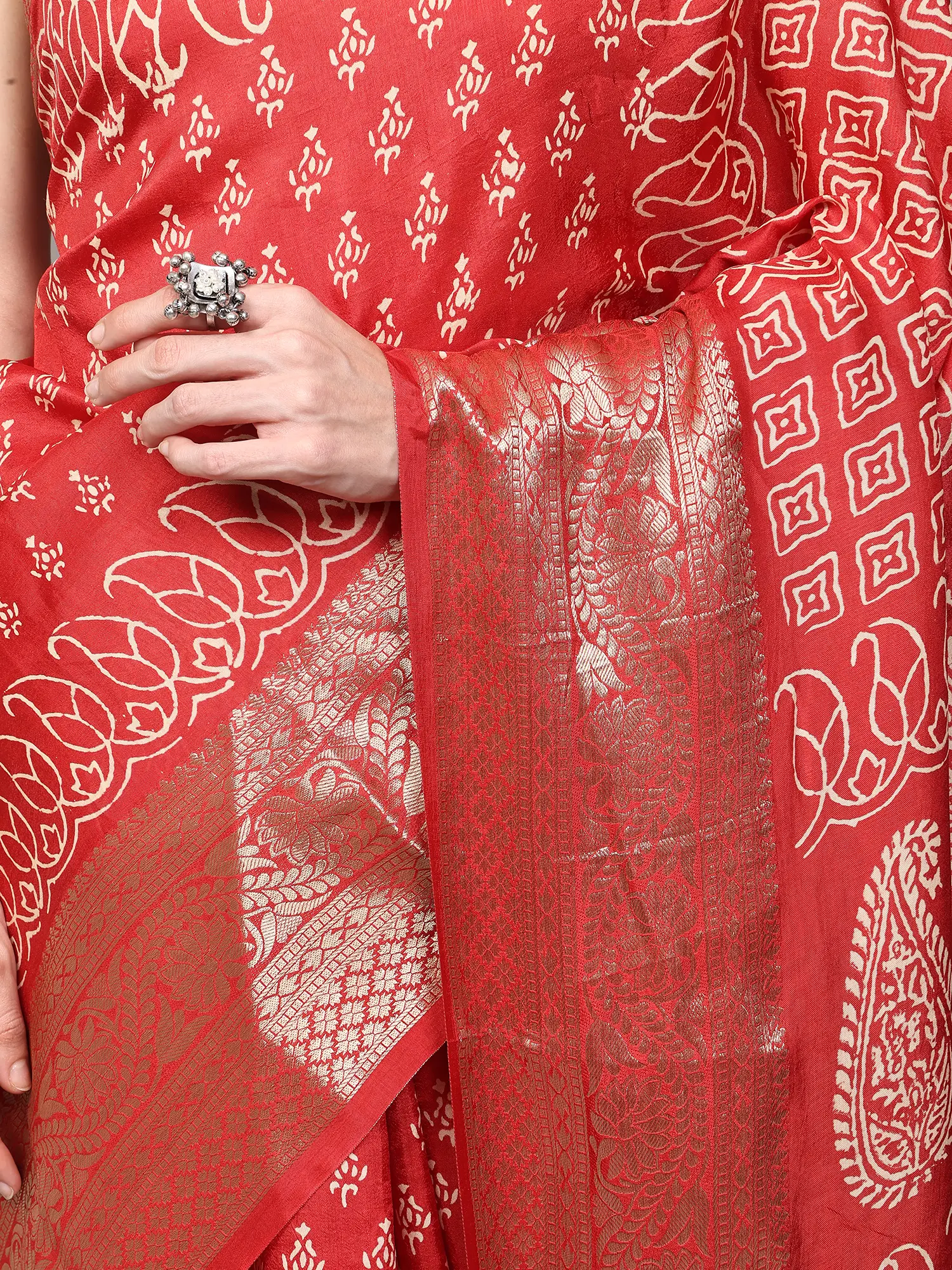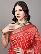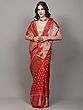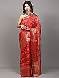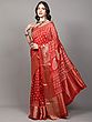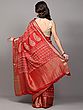 Spicy-Orange Dola Silk Saree with Block Printed Motifs and Zari woven Lotus Bail Border