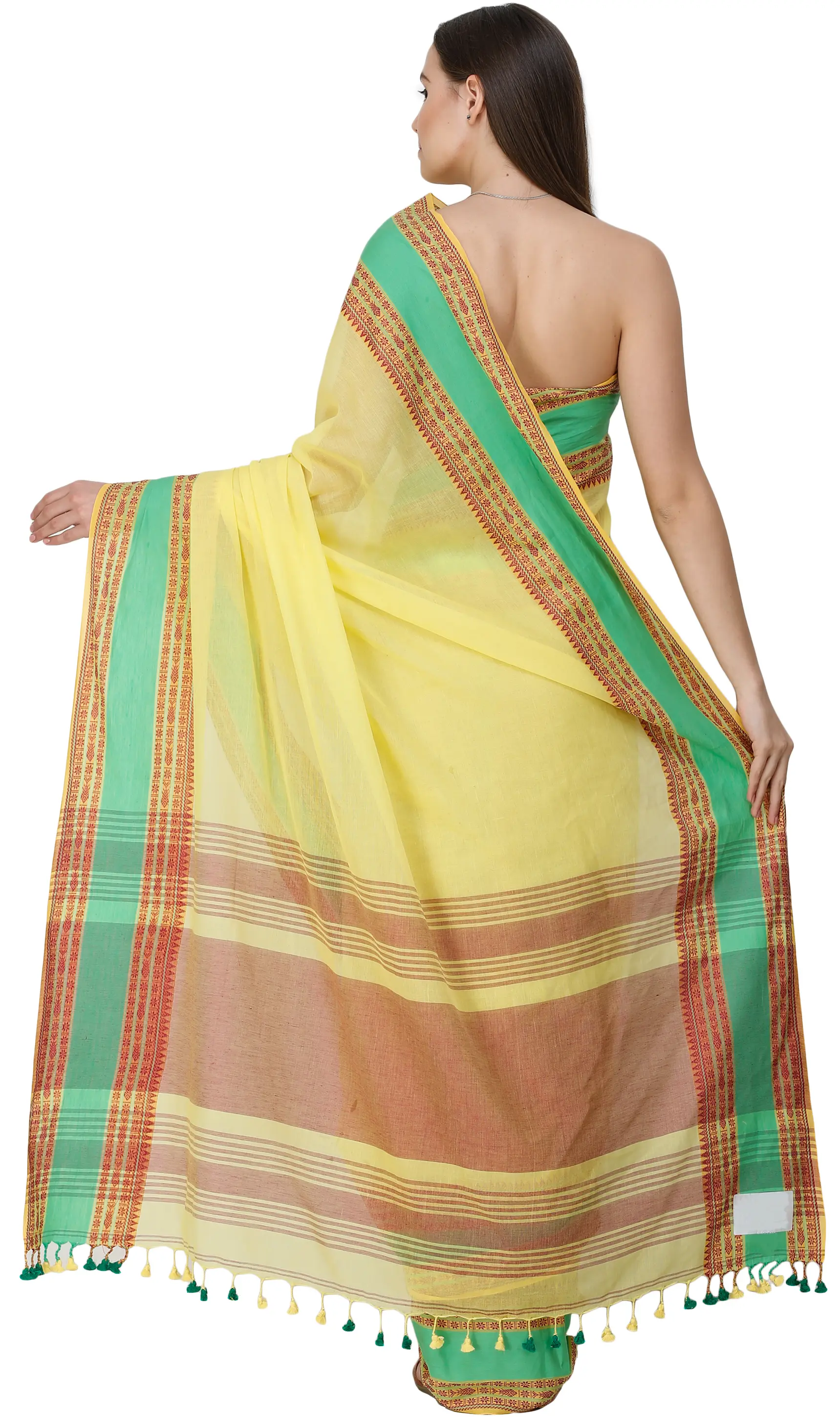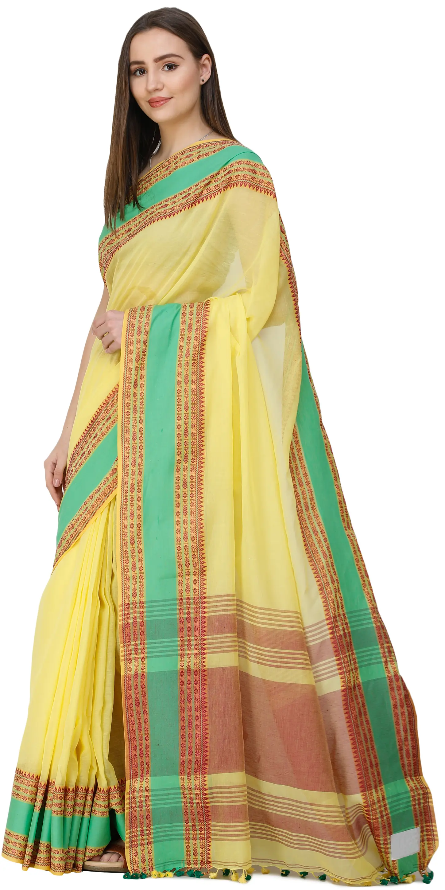 Discover the perfect blend of tradition and contemporary style with our exquisite Aurora-Yellow Puja Sari, a testament to the rich weaving heritage of Kolkata. Crafted from pure, breathable cotton, this sari promises unparalleled comfort, making it an ideal choice for festive occasions, religious ceremonies, or even everyday wear when you desire a touch of refined grace.
