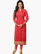 Hot Coral Chudidar Kameez Suit with Self-Colored Embroidery and Crochet Border