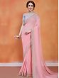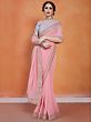 Baby-Pink Georgette Embroidered Border Saree With Grey Banglori Silk Chowkadi Motif Blouse And Thread-Pearl Work