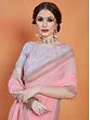 Winter-White Designer Wedding Sari with Aari Embroidery and Sequins in Pink