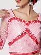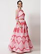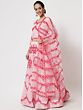 Draped in the baby pink net Mughal motif lehenga choli, elegance unfolds with a delicate touch. The Mughal motifs intricately adorn the net fabric, creating a visual symphony of tradition. All-over thread embroidery adds intricate stealing, enhancing the ensemble with timeless charm. Paired with a matching dupatta, this attire is a celebration of refined aesthetics, where the gentle baby pink hue, net fabric, Mughal motifs, and meticulous embroidery converge to craft a captivating statement of grace and cultural richness.