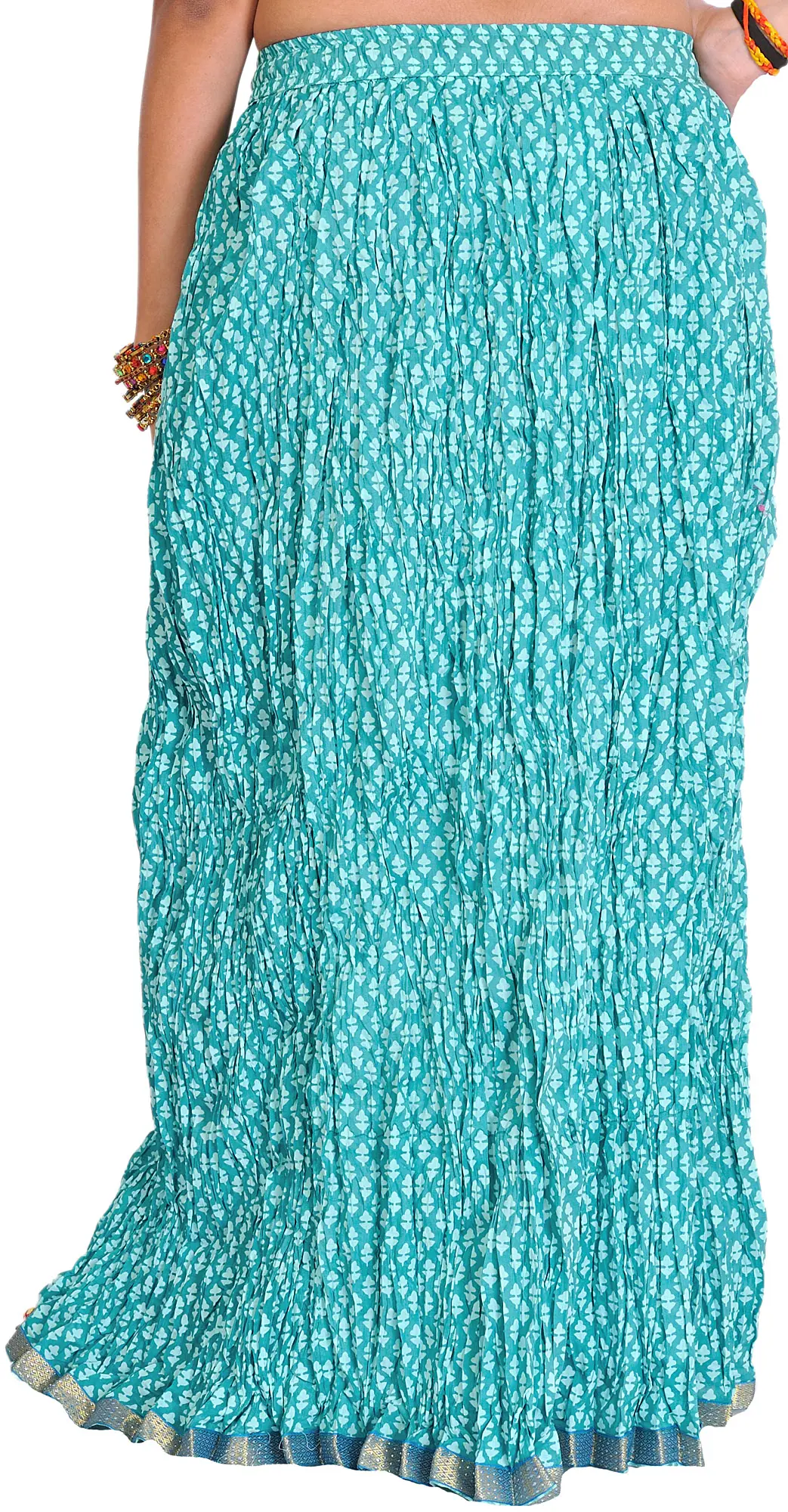 Floral Print Long Skirt with Both Side Drawstring Waist