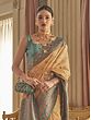 Party Wear Vichitra Silk Saree With Gold Zari Work On Border And Motifs All-Over