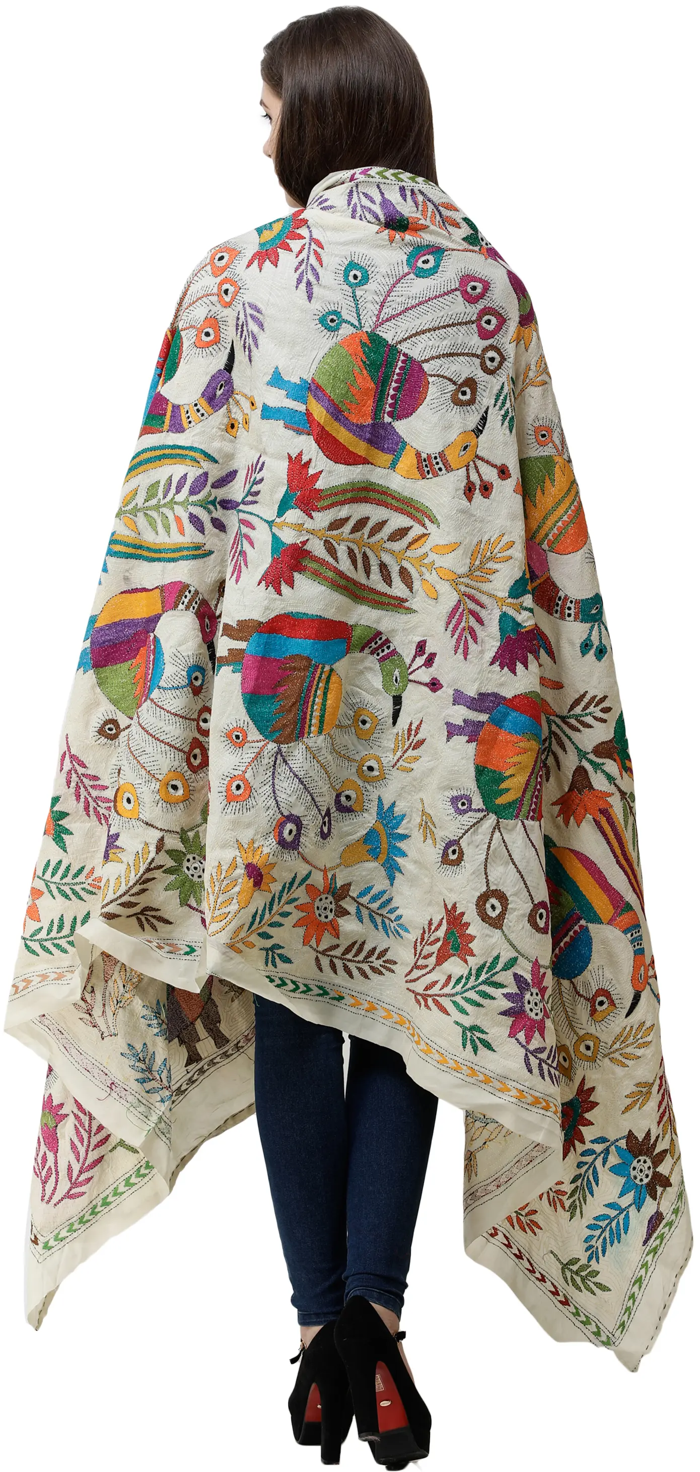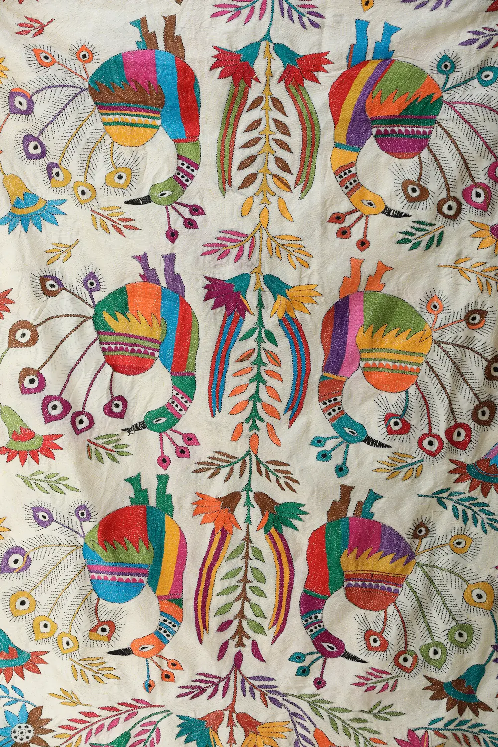 Pure Cotton Shopper Bag with Zari and Mirror Embroidered Patch and Wedding Palanquin Motif