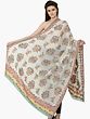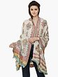 Ivory Stole with Kani Printed Flowers and Embroidered Emblem